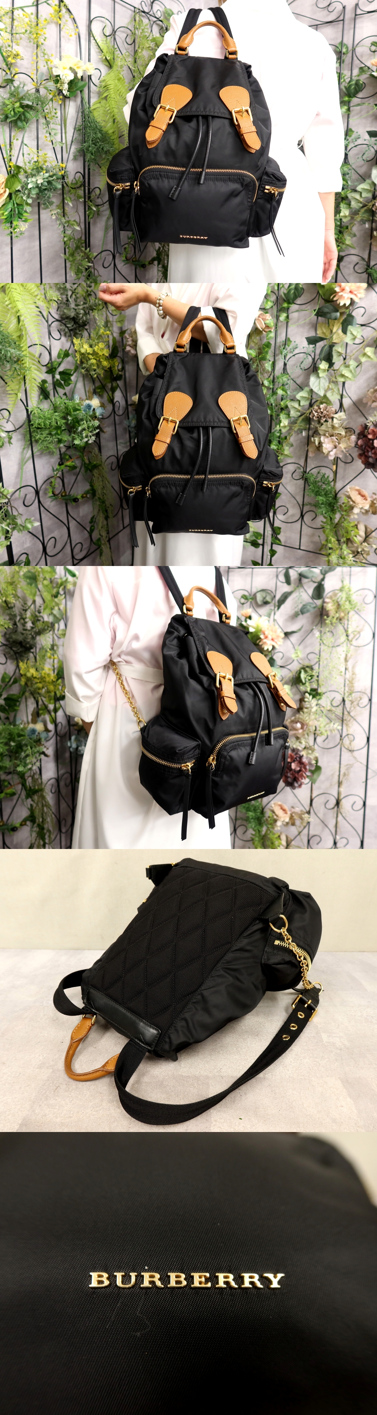 超美品●新品同様●BURBERRY バーバリー●ロゴ金具●ナイロン サフィアーノ レザー 本革●リュックサック●黒●ゴールド金具●B5●Js61323 收藏