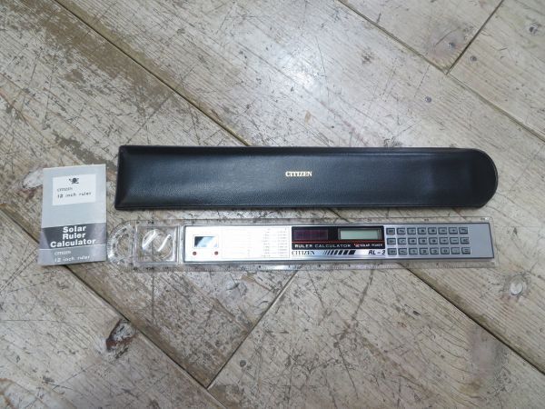 【中古/使用頻度=少/時計表示⇒×/計算機⇒○】 CITIZEN 12inch ruler/Solar Ruler/Calculator 検索用⇒ 昭和レトロ/定規/計算機/F1019 收藏