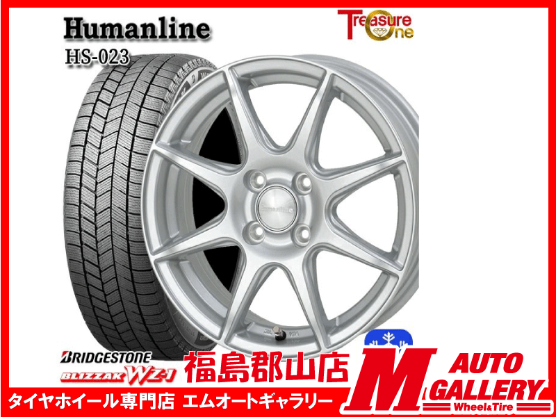 郡山 新品 スタッドレスホイールセット1台分 ヒューマンラインHS023 15x5.5J+50 4H100 SI ブリザックWZ1 185/60R15 84Q E13ノート等 收藏