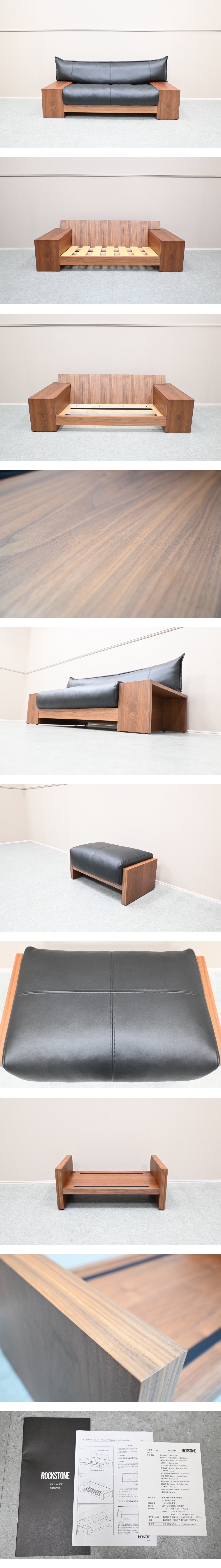 ☆展示極美品☆ROCKSTONE ロックストーン 2人掛けソファ KIZA キザ オットマン付 本革 ウォールナット 岩倉榮利 取説 82万 收藏
