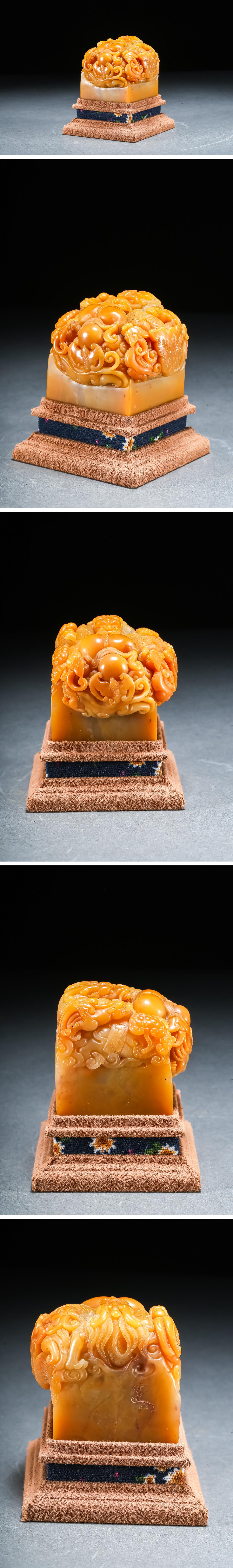 【清】某有名オークション購入 清時代 寿山田黄石 群龍戯珠紋印章 材質保証 古置物 古擺件 中国伝来 古美術 時代コレクションZ-91