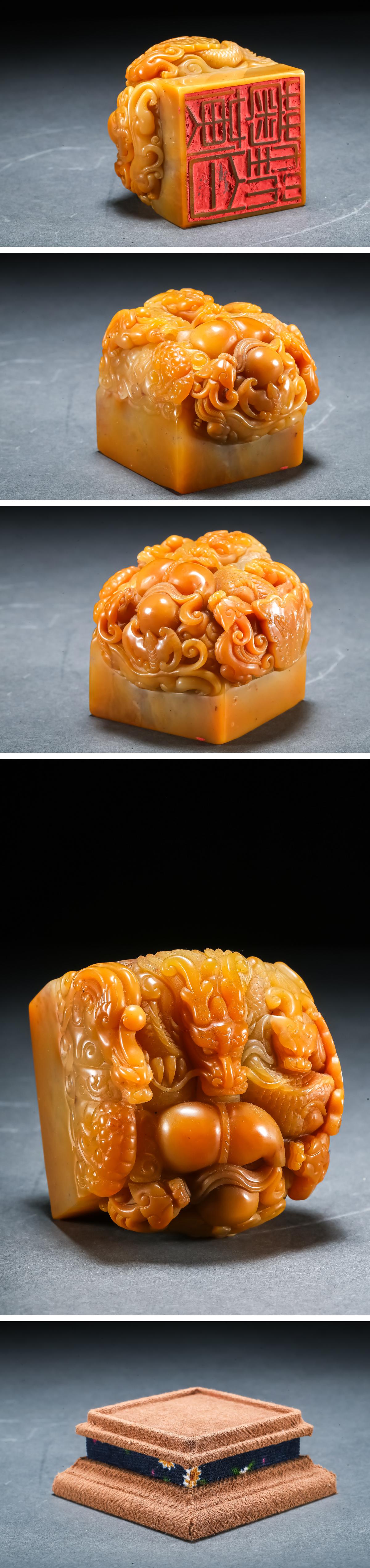【清】某有名オークション購入 清時代 寿山田黄石 群龍戯珠紋印章 材質保証 古置物 古擺件 中国伝来 古美術 時代コレクションZ-91 收藏