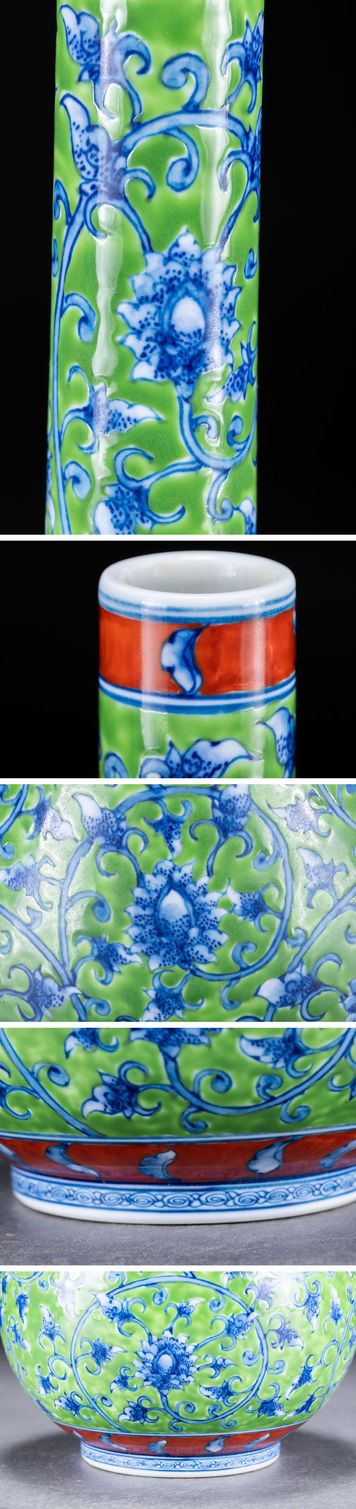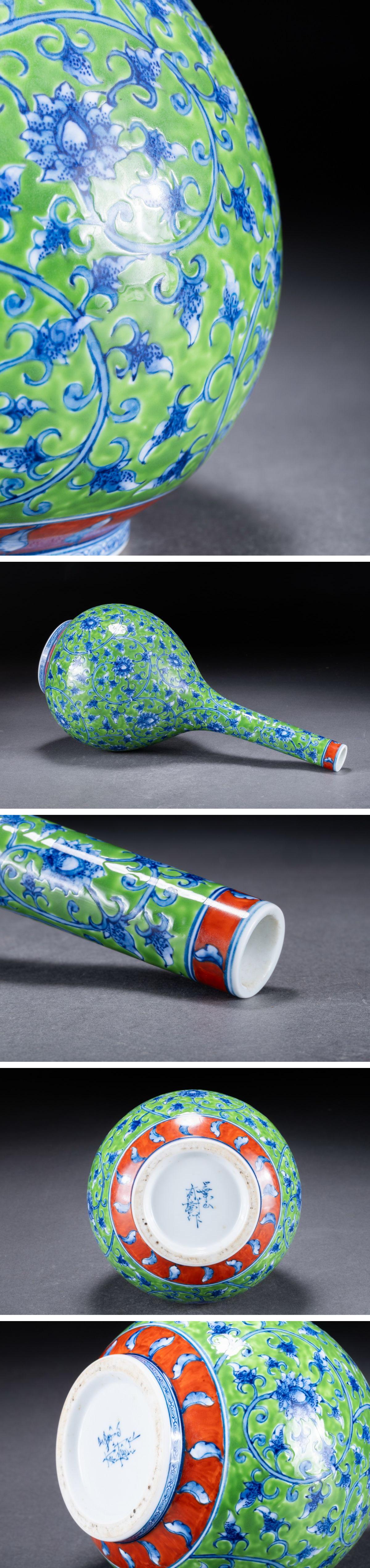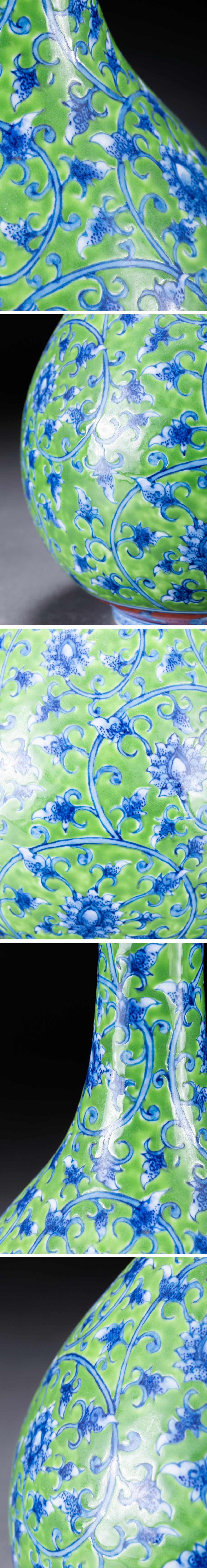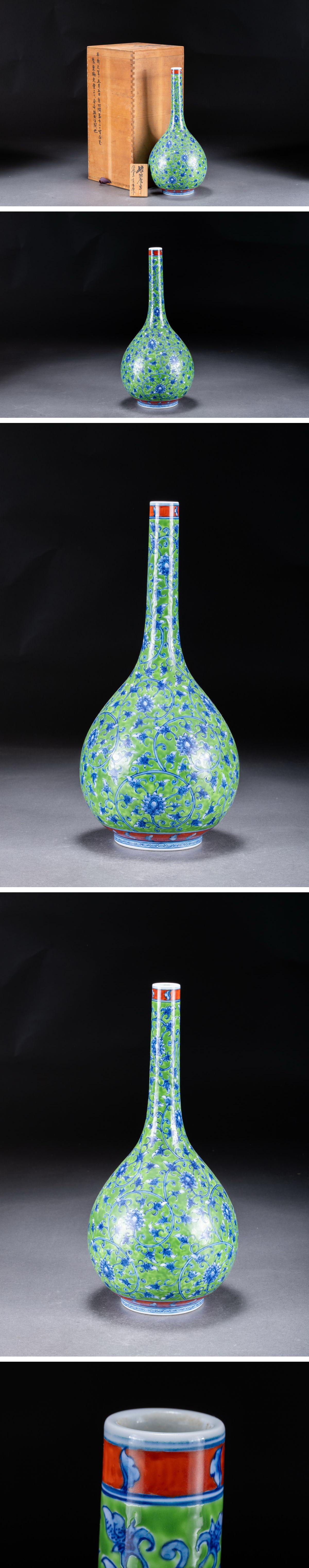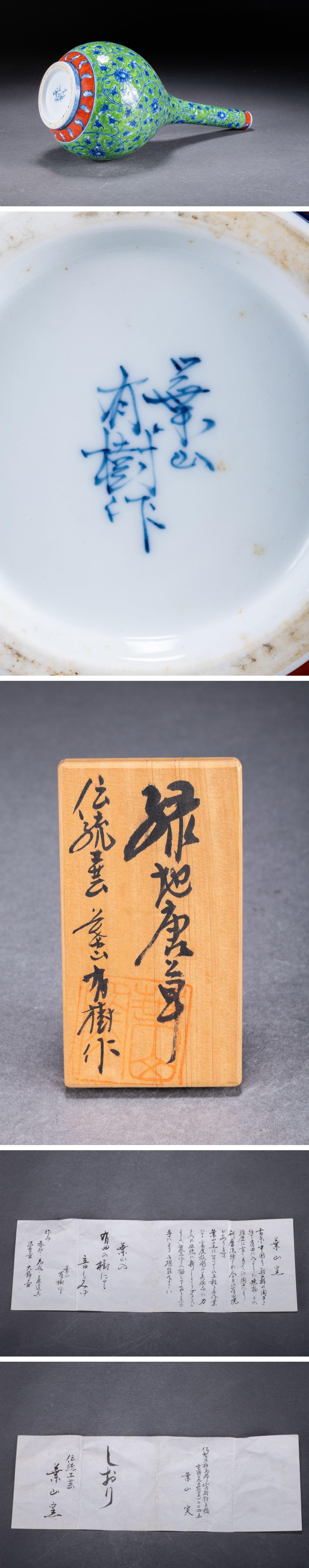 【華】時代舊藏 時代物 有田焼 名所「華山有樹作」緑地唐草紋花瓶 壺 時代物 古美術 骨董品A25070351-PQQ 收藏