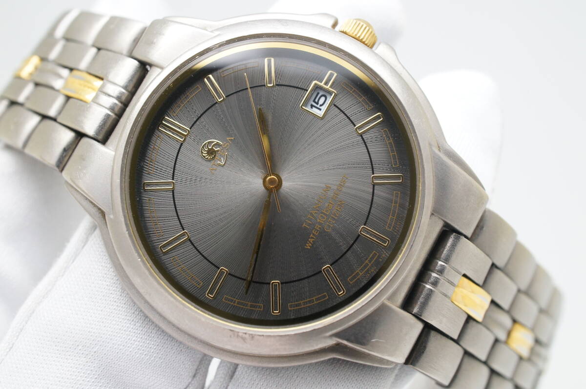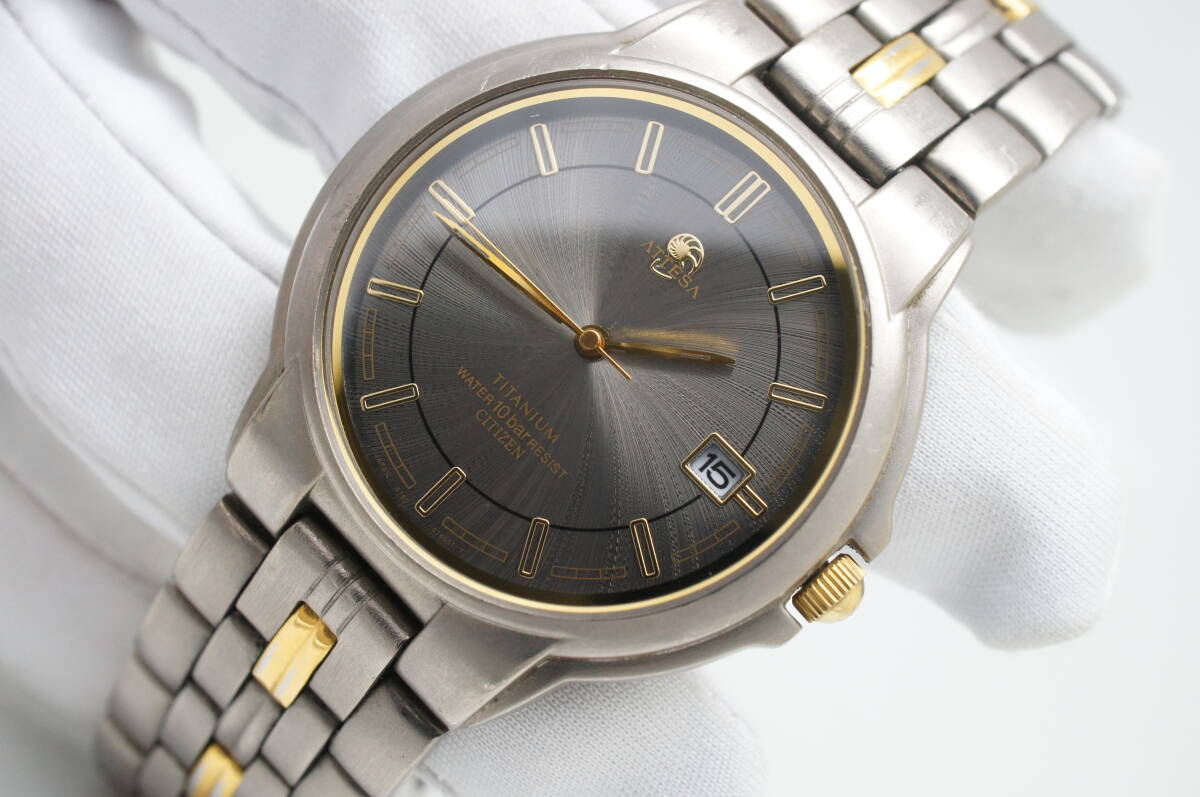 J113●作動良好 CITIZEN シチズン ATESSA アテッサ 4765-472187 TITANIUM チタン製 デイト メンズ腕時計 コンビ お洒落 クォーツ 收藏