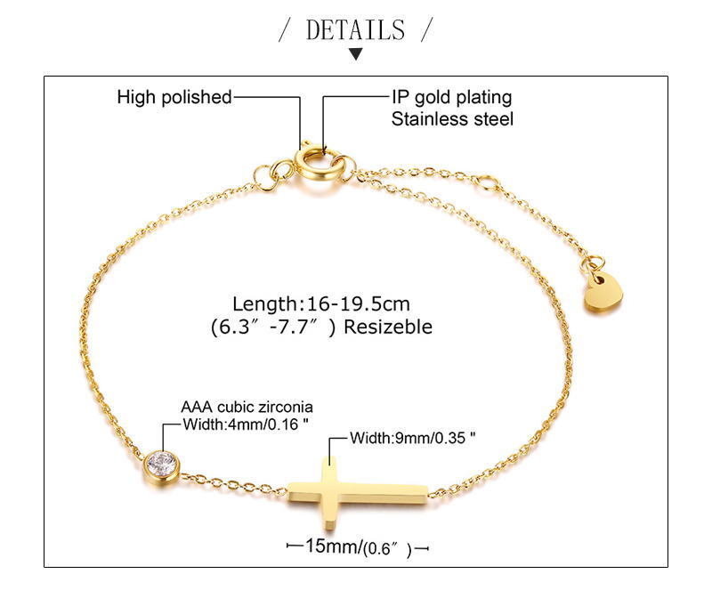 クロス&ハート&czダイヤモンド★ゴールドステンレス ブレスレットk18金メッキ 收藏