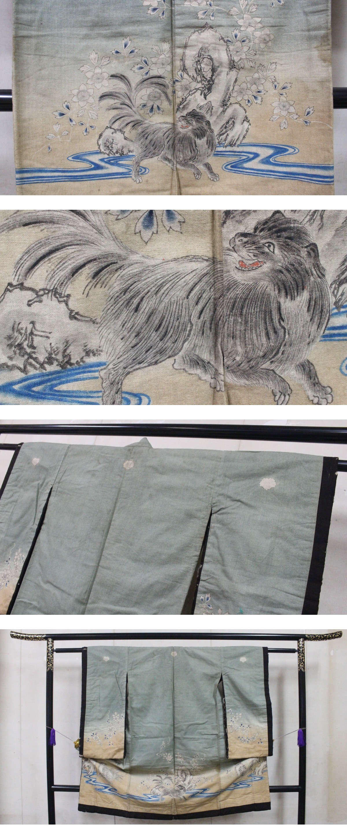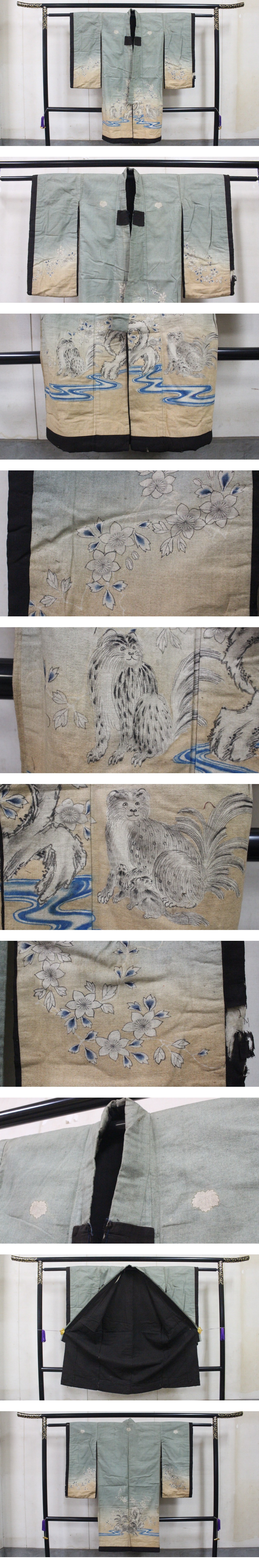 紋付 木綿 犬柄 子供 祝着 着物 祝い着 時代物 古布リメイク生地 エ60 收藏