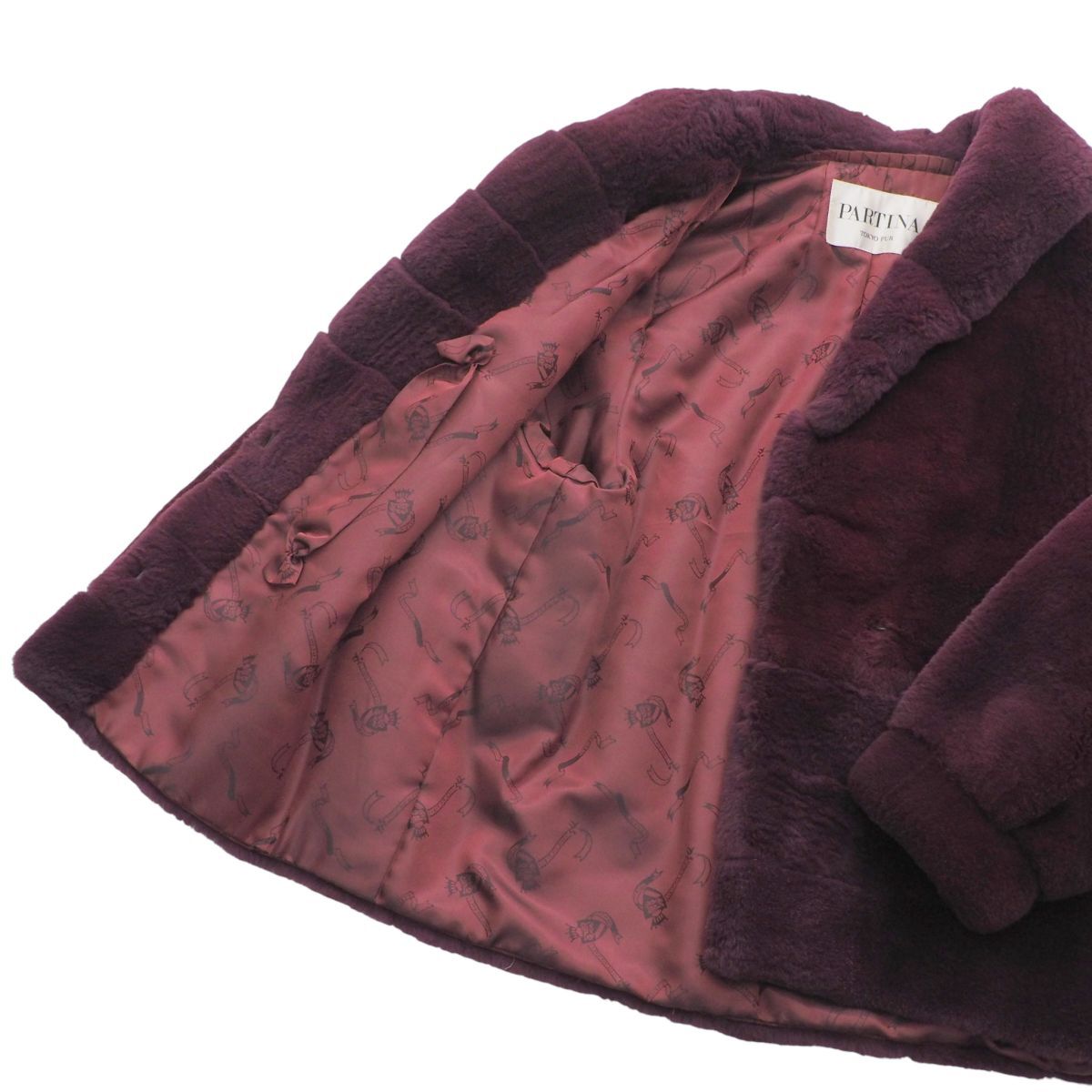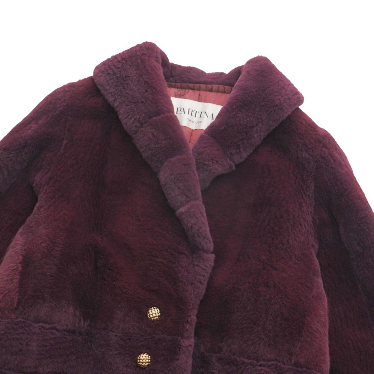 GS2936◇PARTINA パルティナ TOKYO FUR シェアード ムートン ファージャケット ハーフ丈 ファーコート 毛皮コート サイズ11 ワインレッド系