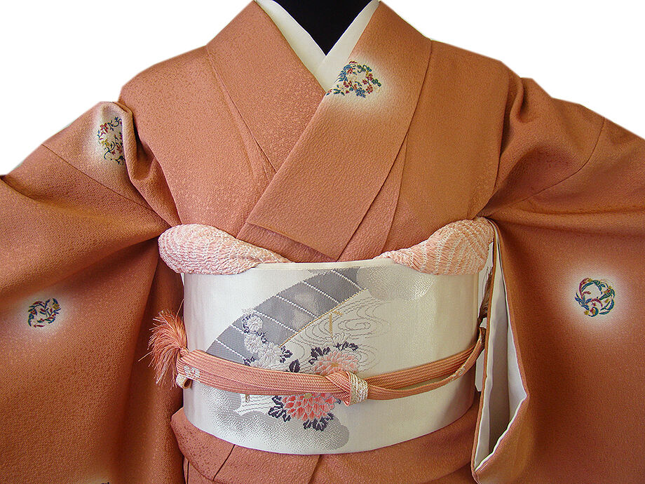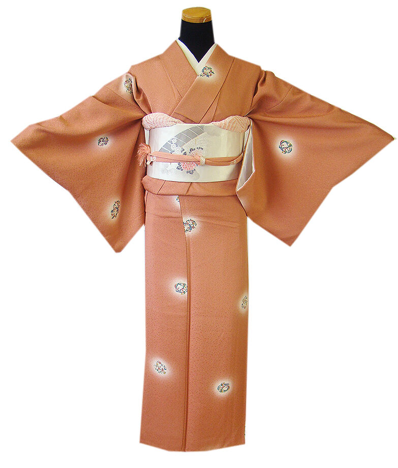 | 商品説明 | こちらのお品は「袷」ですので10月から5月までお召頂ければと思います。 しなやかで滑らかな手触りの着心地良い重めの極上ちりめん地の生地、 渋い珊瑚朱色地に花丸文の飛び柄の染柄、 八掛は樺色(正絹)、幅広い年代の方にお召し頂けます。 しなやかで扱い易く〆易い箔織のなごや帯(たいこ柄)は、 銀色地に花草、流水、鳥柄の織柄がお顔映りも華やかな帯姿を演出しております。 また、帯揚げはサーモンピンク色地に花柄の絞り柄、 帯〆は平組、サーモンピンク色の組紐となっております。 |