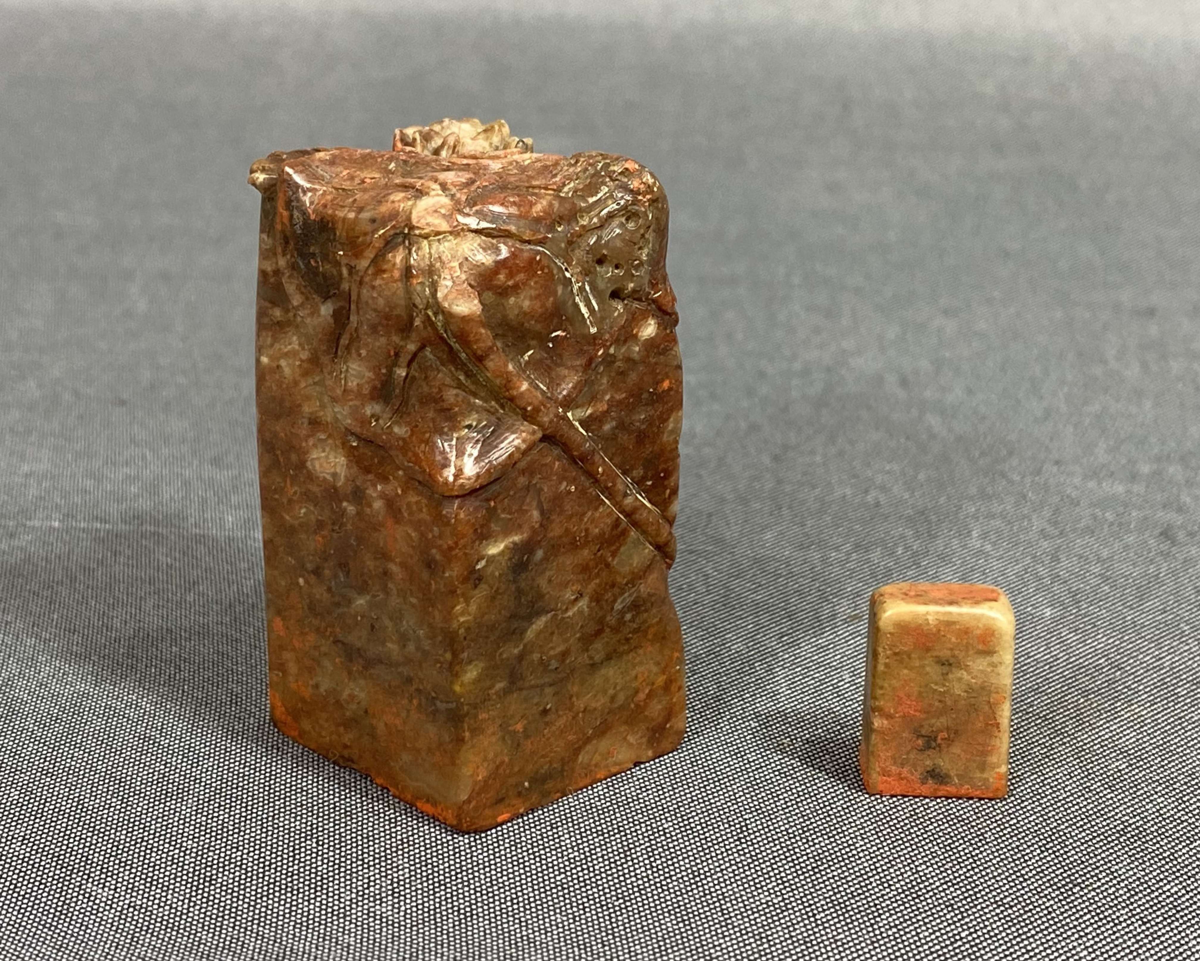 【風車】寿山石 蓮荷文 印章2点▲篆刻 古美術 古印材 印材 印鑑 印章 文房四宝 書道 箱有り 検: / 寿山石 /鶏血石/ 田黄石 / 青田石 收藏