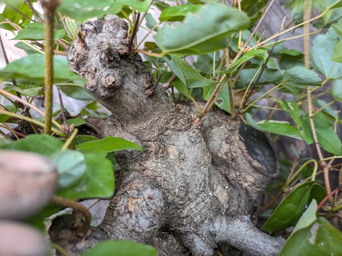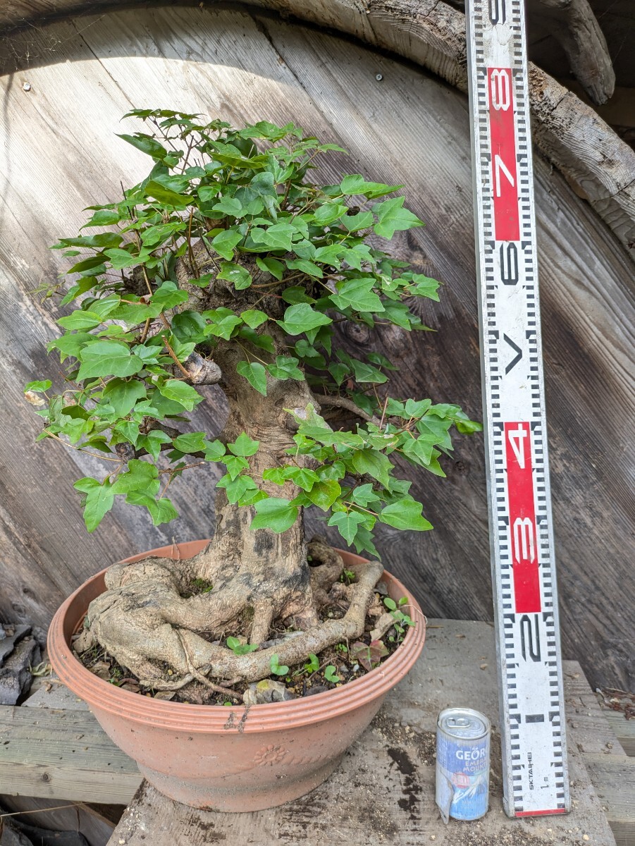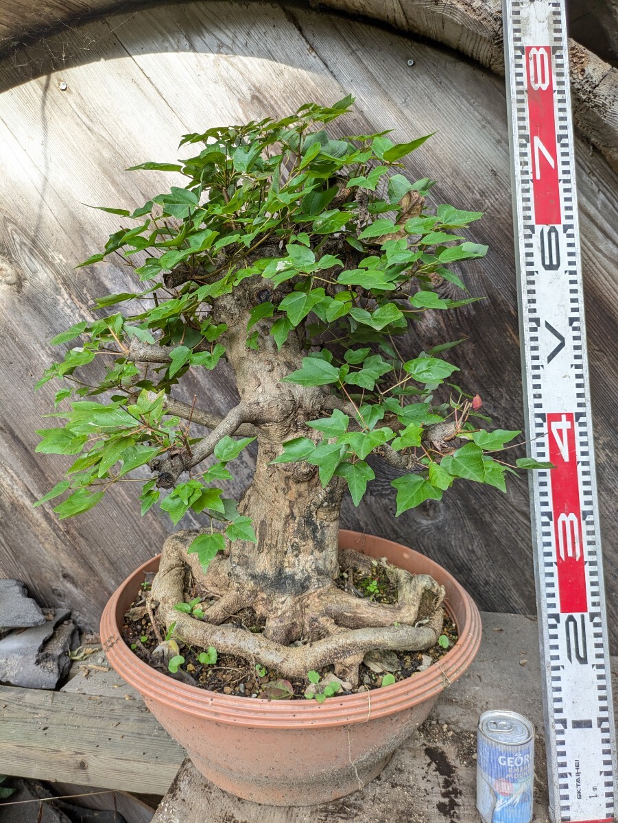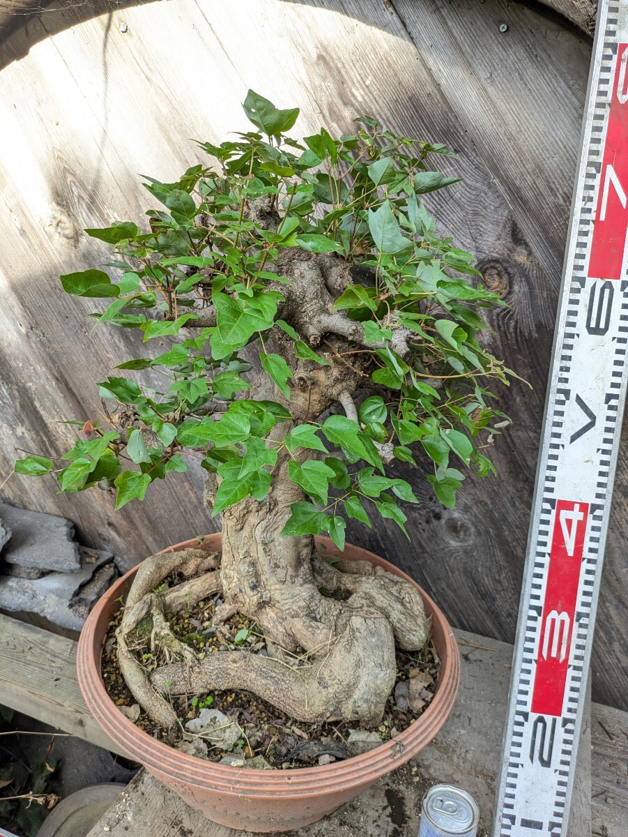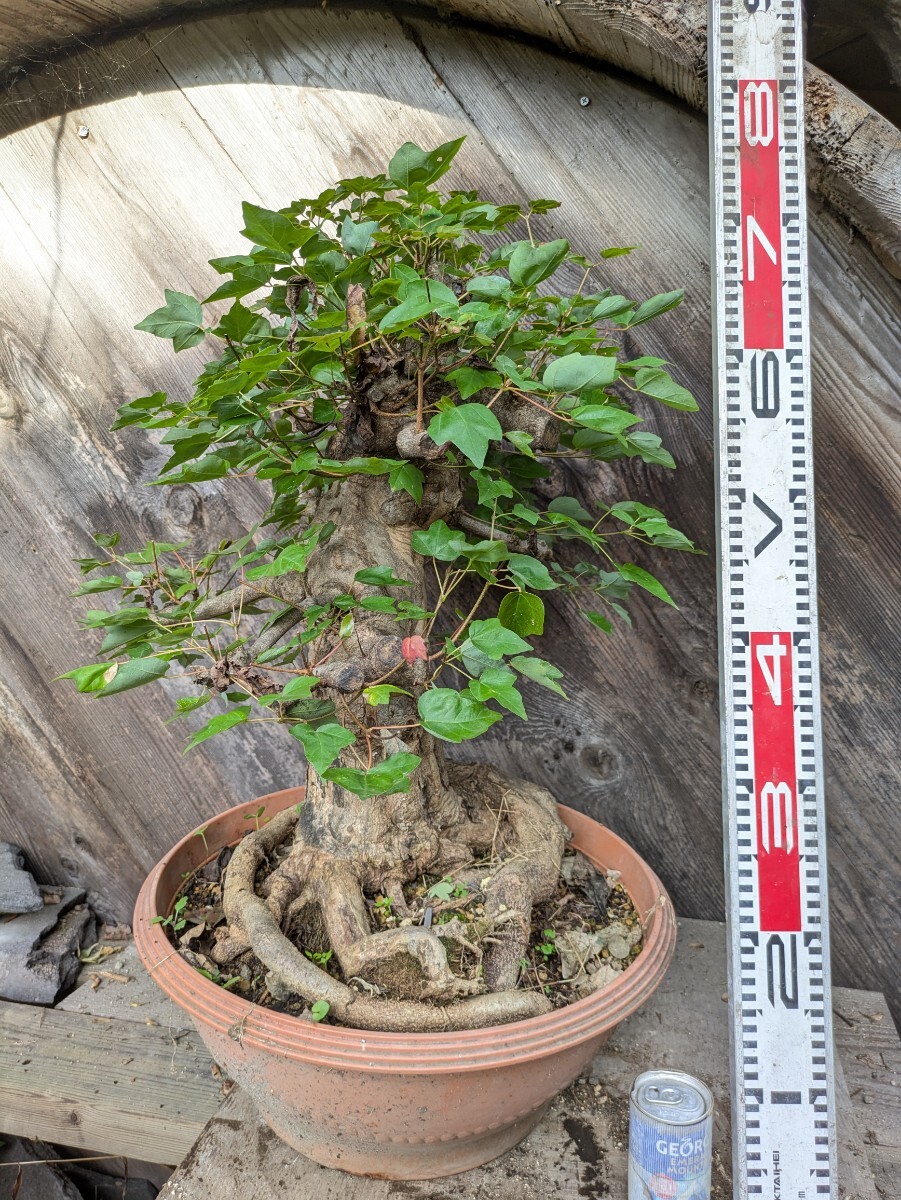 およそは40x45x75cmの枠に入るサイズ。根本付近からの高さは55cmくらい。枝を切っては胴吹き芽でコンパクトにして 主幹の肉乗りは まだまだですが 渦巻いた感じの根張りだけ太くなってます。根張り部分が気に要らない方は用土で埋めても良いと思います。プラ鉢は長年で老朽化してます。発送梱包の際に痛むヶ所が有るかもしれません。佐川急便にて発送する事も有ります。