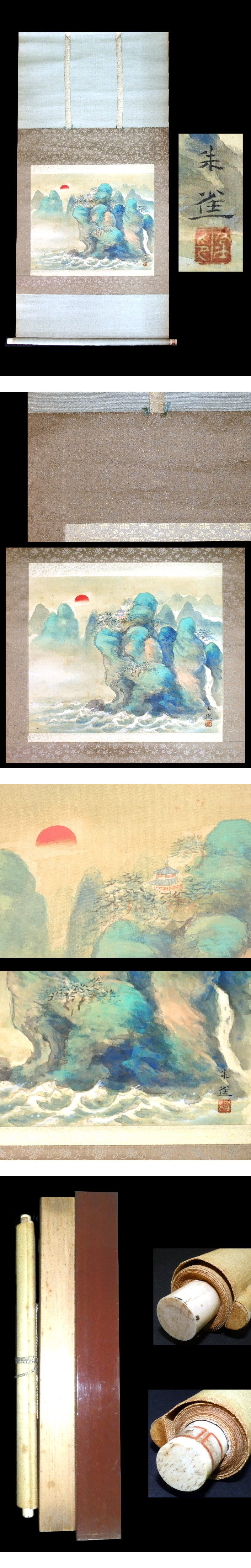 真作保証【和】■橋本関雪師事【楳崎朱雀】筆 蓬莱山図 掛軸■ 收藏