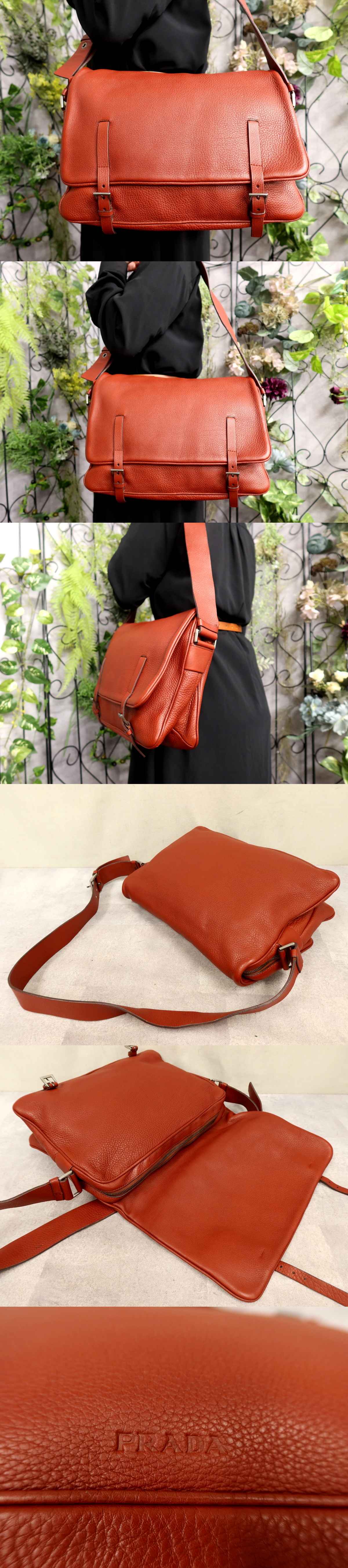 ●超美品●PRADA プラダ●メンズ●フラップ●カーフ レザー 本革●ショルダー バッグ●赤茶●シルバー金具●イタリア製●B5 収納●Js61507 收藏