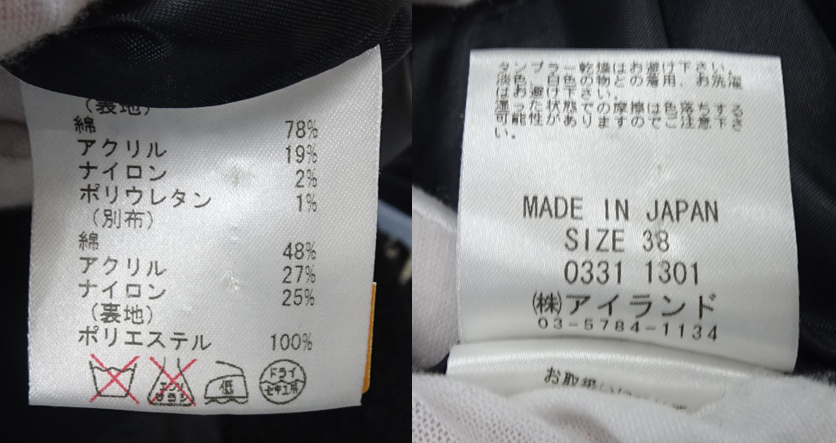 ★ご入札前に必ず最下部までお読み頂き、ご理解の上ご入札お願い致します。 ★上下ともサイズ38です。 ★中古のため、多少の着用感があります。 ★ノークレームノーリターンでお願いいたします。 ★写真、説明文にてご納得頂けない場合、心配な部分がある場合は質問頂くか、入札をご遠慮下さい。 ★実際の色と、画像の色具合が異なる場合がございます。 ★付属品は基本的に写真にあるものが全てになります。 ★また出品中を含め、値引きなど値段交渉にも応じられません。 ★万一の返品の際は不具合の状況によりまして、当方が返品送料の負担の有無を決めさせていただきます。 ★返品の際は元払いにて返送をお願い致します。当方に到着後、状態の確認をし、返金させて頂きます。 ★ジャンク品と記載してある商品につきましては、説明文以上の破損や不具合がございましても当方責任を負いかねます。 ★ジャンクという状態を勘違いされている方が増えております。 『ジャンクとはそのまま使える見込みがないほど故障・損耗して、 製品としての利用価値を失っている故障品。ゴミ。未使用か中古かは関係がない。』 抜擢した文章ですが、上記の様になっております。ご了承下さい。 ★当方代理出品ですので商品によりましては不明な点がある場合があります。 ★上記ご了承の上、ノークレーム・ノーリターンでお願いします。 | |
