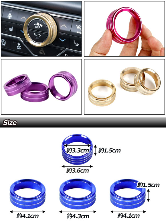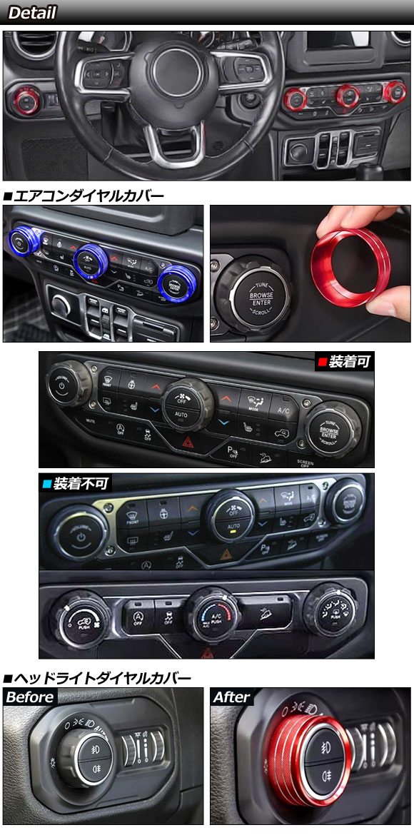 ダイヤルリングカバー ジープ ラングラーアンリミテッド JL系 2018年~ ブルー アルミ製 入数:1セット(4個) AP-IT4461-AB-BL 收藏