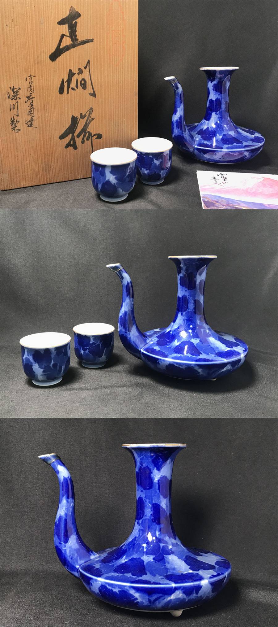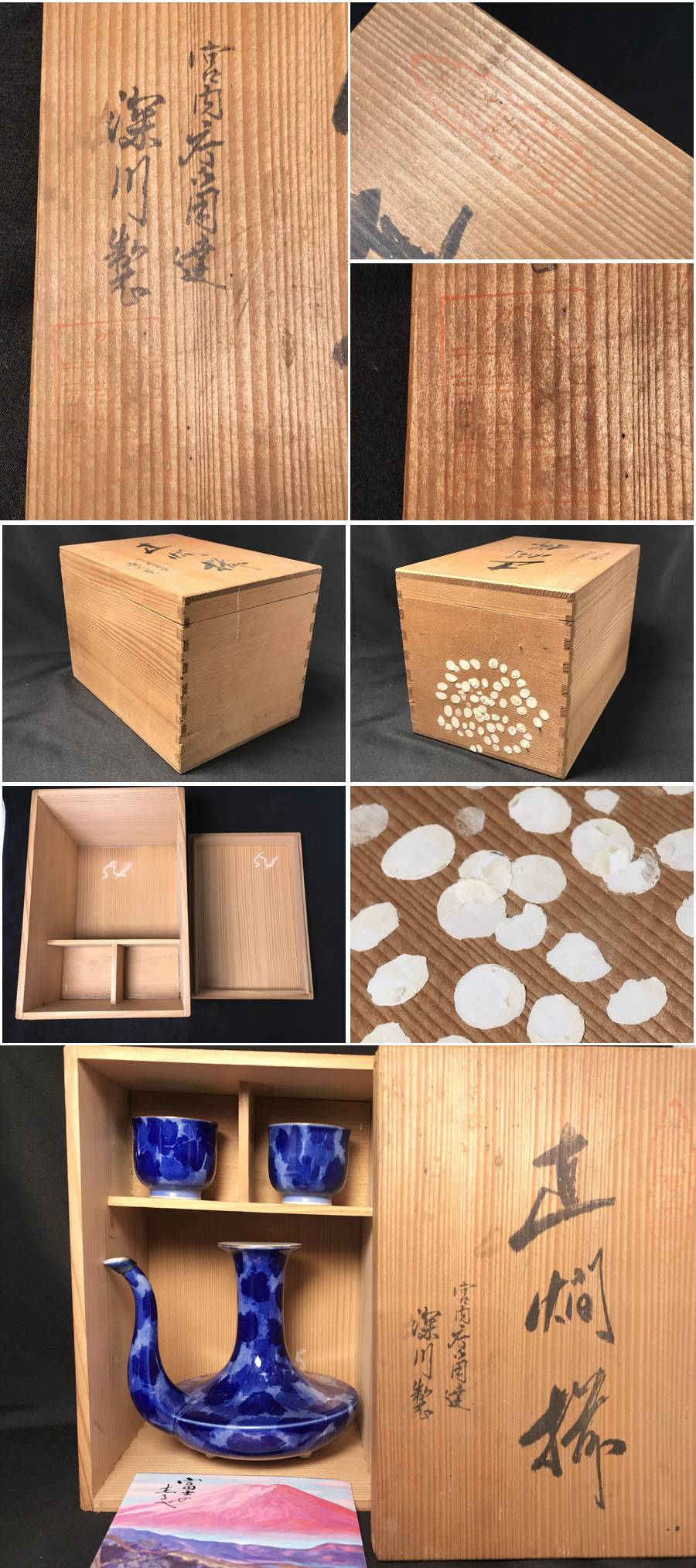 ◆未使用!宮内庁御用達 深川製磁 直燗揃 富士の志るべ 徳利 ぐい呑み 酒器セット 熱燗 日本酒 酒器 有田焼窯元 共箱付き 收藏