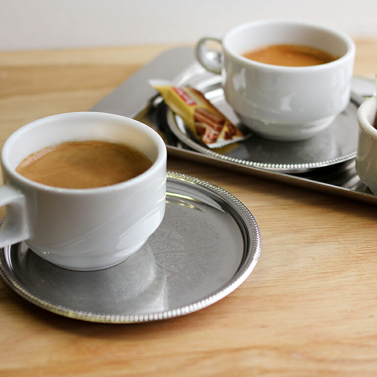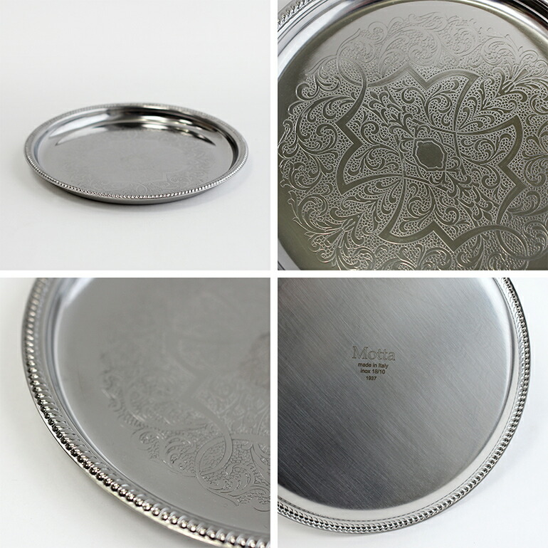 ソーサー ステンレス シルバー φ14cmイタリア製 業務用食器 喫茶店 MOTTA モッタ サンマルコ ダマシン柄 ソーサー 平皿 收藏