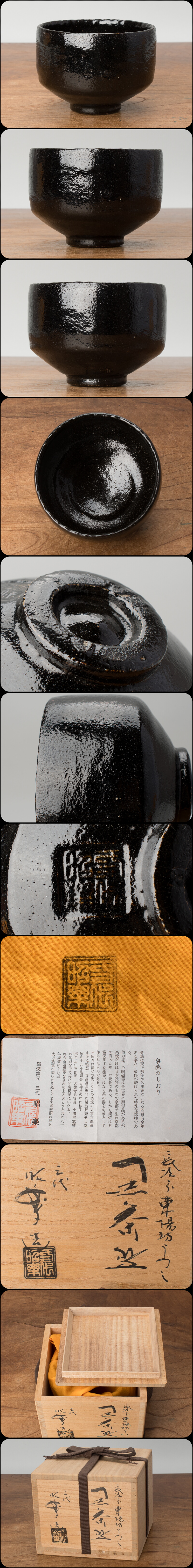 | 三代・佐々木昭楽の長次郎東陽坊うつし黒茶碗。共箱有。真作保証。 サイズは、幅約12cm、高さ約9cm。 傷・直しありません。 状態・詳細は、画像でご確認お願いいたします。 |