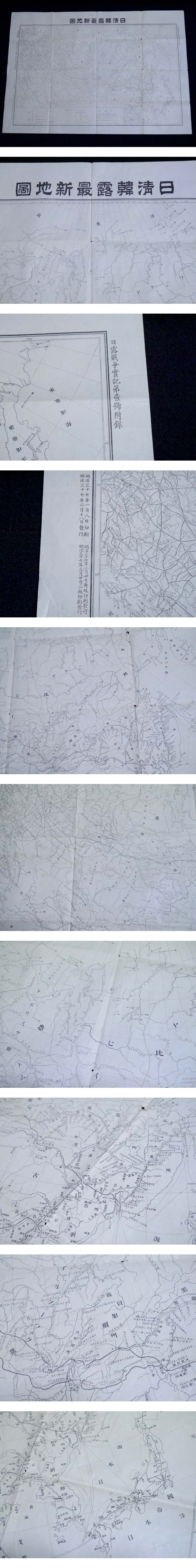 戦前 明治37年 日露戦争開戦直後の「日清韓露最新地図」79×54.5cm 日露戦争実記第一号付録(商品説明内に詳細画像あり)資料 歴史 收藏