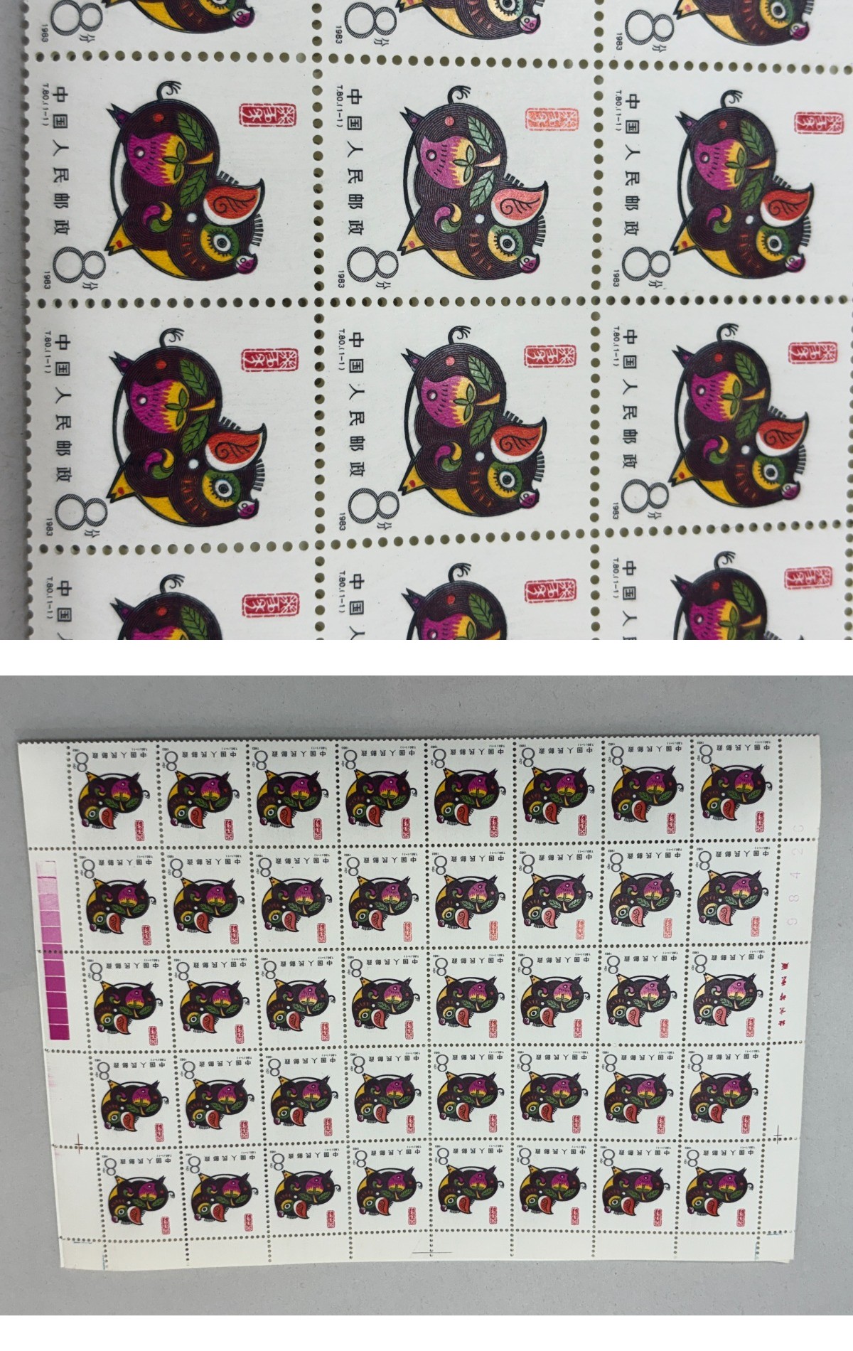 6M 未使用 中国切手 中華人民郵政 (8) T.80 (1-1) 1983 干支 記念切手 年賀 猪 イノシシ シート 希少 CHINA 1円スタート 收藏