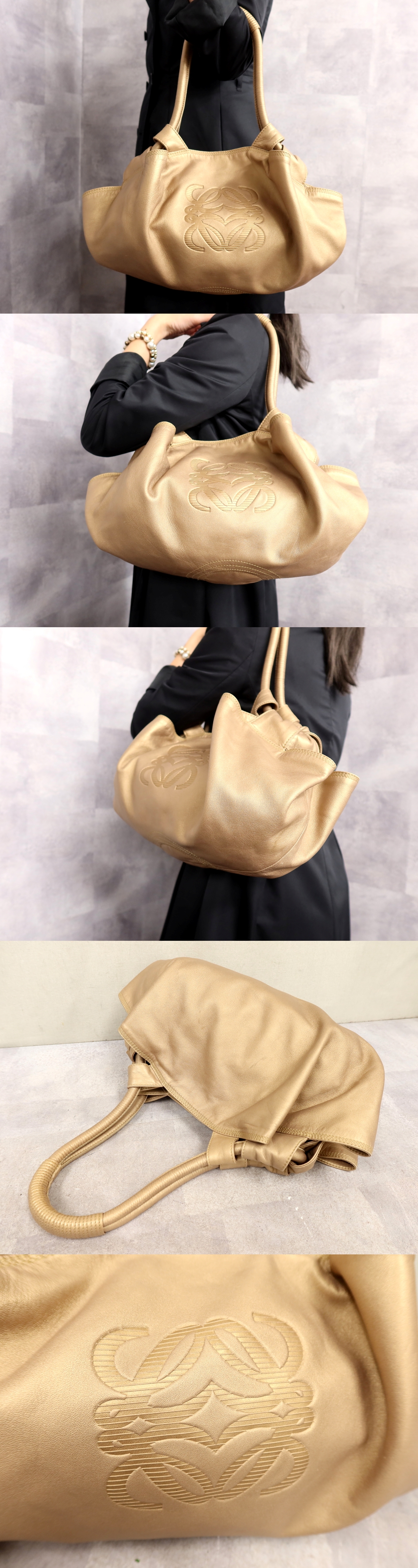 ●超美品●LOEWE ロエベ●アナグラム●ロゴ型押し●アイレ●ナッパ レザー 本革●ハンド バッグ●ゴールド●B5 収納 書類 かばん●Js63430 收藏