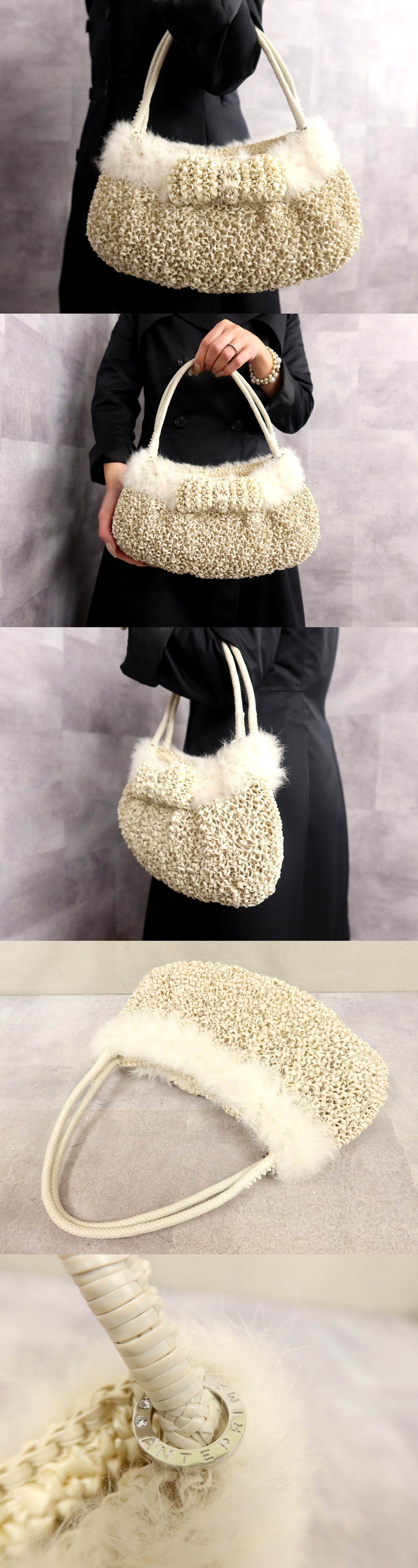 ●超美品●ANTEPRIMA アンテプリマ●リボンモチーフ●ファー ワイヤー●ハンド バッグ●アイボリー●シルバー金具●腕掛け●Js63437 收藏