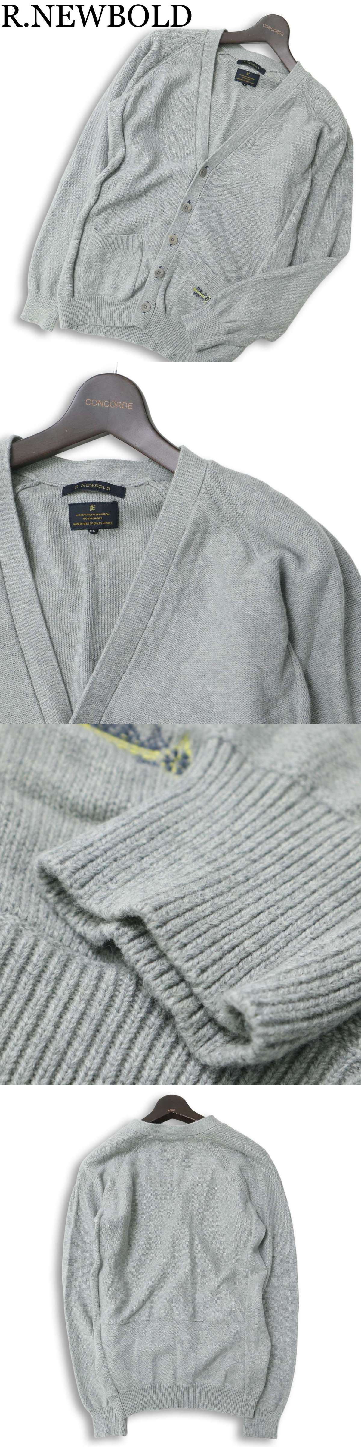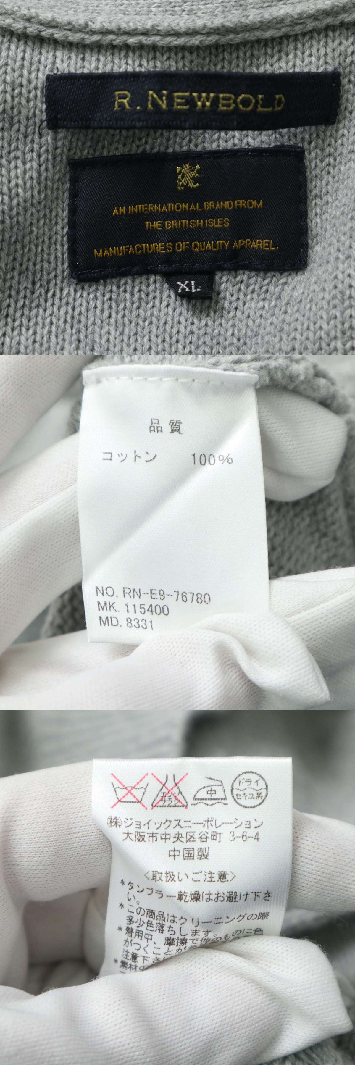 R.NEWBOLD ポールスミス 通年 刺繍★ Vネック コットン ニット カーディガン 羽織り Sz.XL メンズ グレー 大きいサイズ 收藏