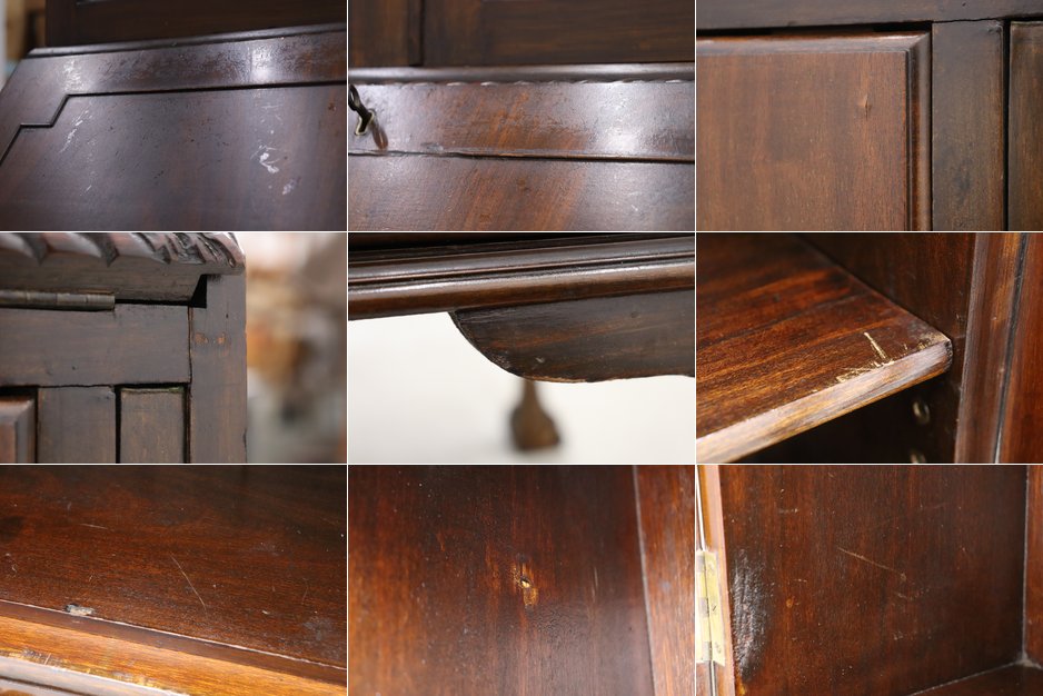 ◆英国 イギリス マホガニー材 ヴィンテージ ガラス ビューロー キャビネット 飾り棚 本棚 食器棚 ショーケース/アンティーク/PKK30199◆ 收藏