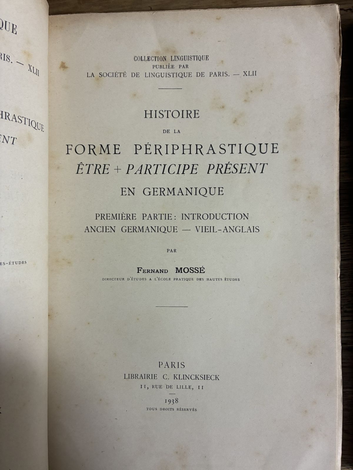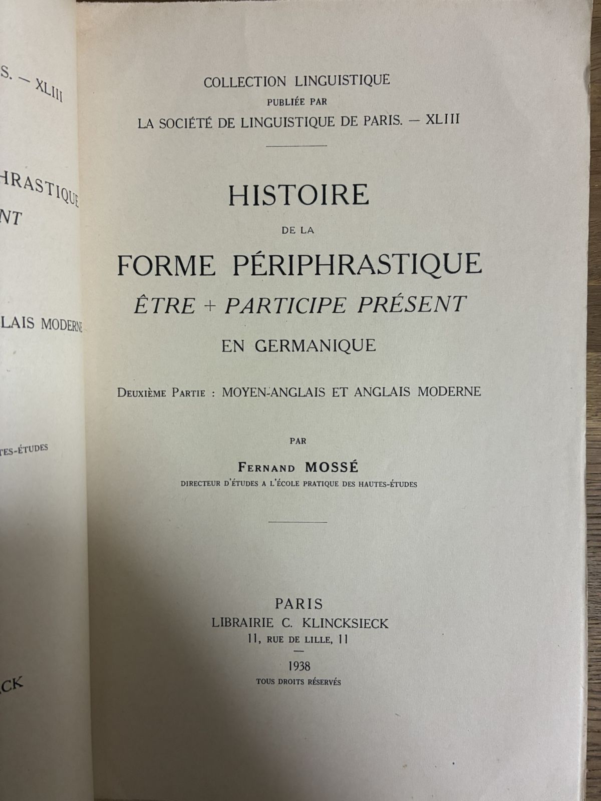 1938年 フェルナン・モッセ ゲルマン諸語における〈be+現在分詞〉迂言形式の歴史(全2冊) FERNAND MOSSE Histoire de la forme... 收藏