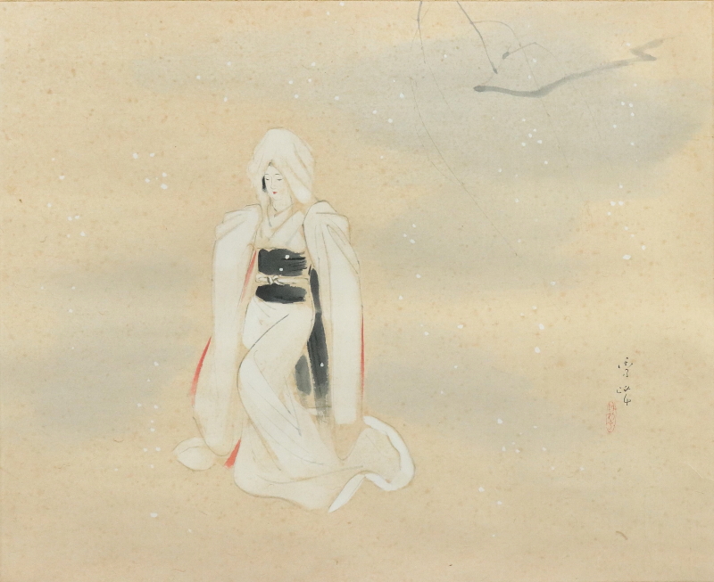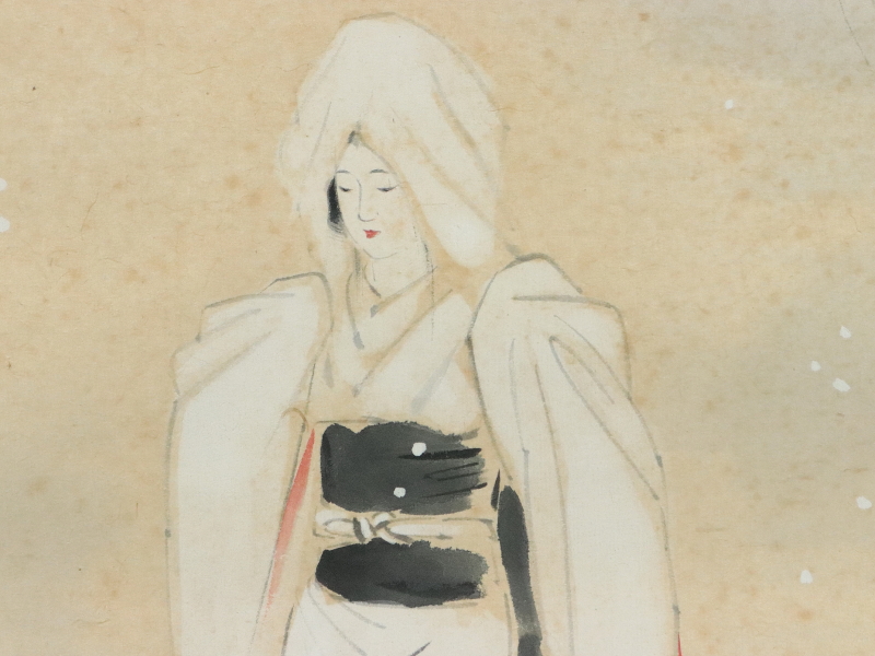 12138■【真作】山川秀峰 「鷺娘」 肉筆 共箱 鏑木清方・池上秀畝師事 歌舞伎 日本舞踊掛 軸 收藏