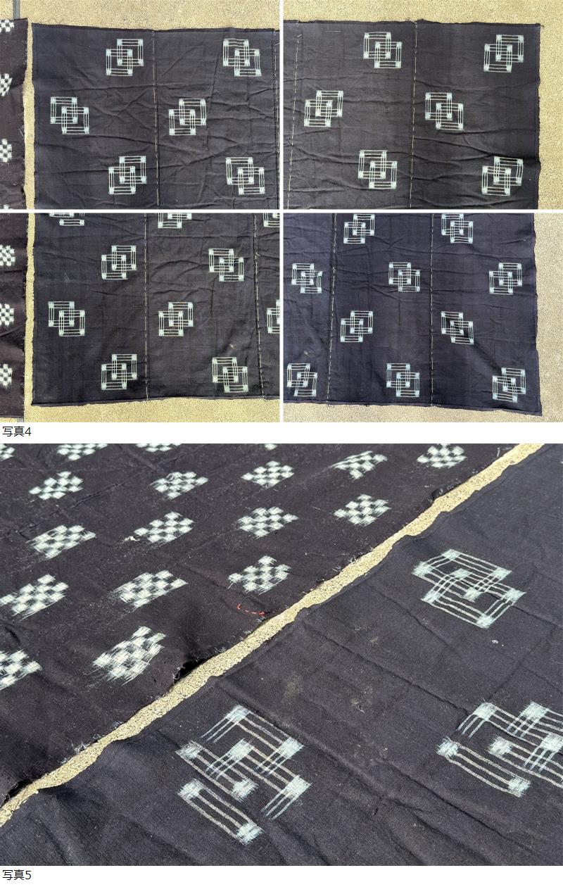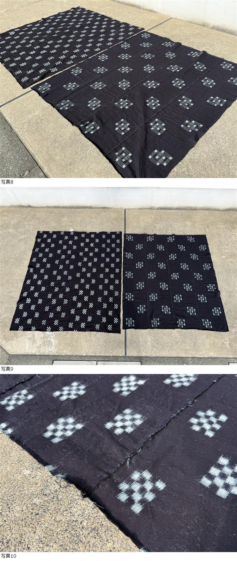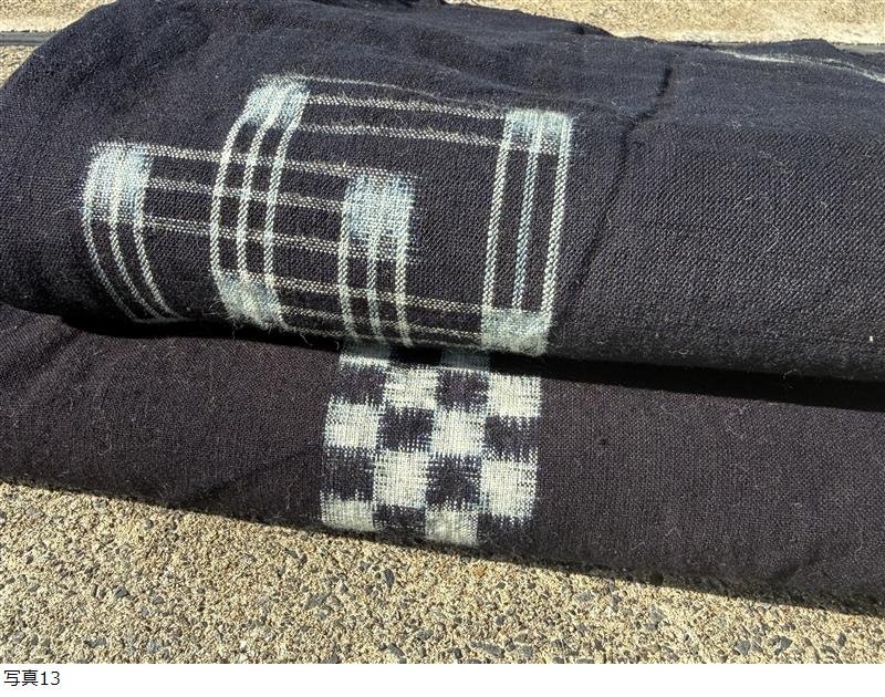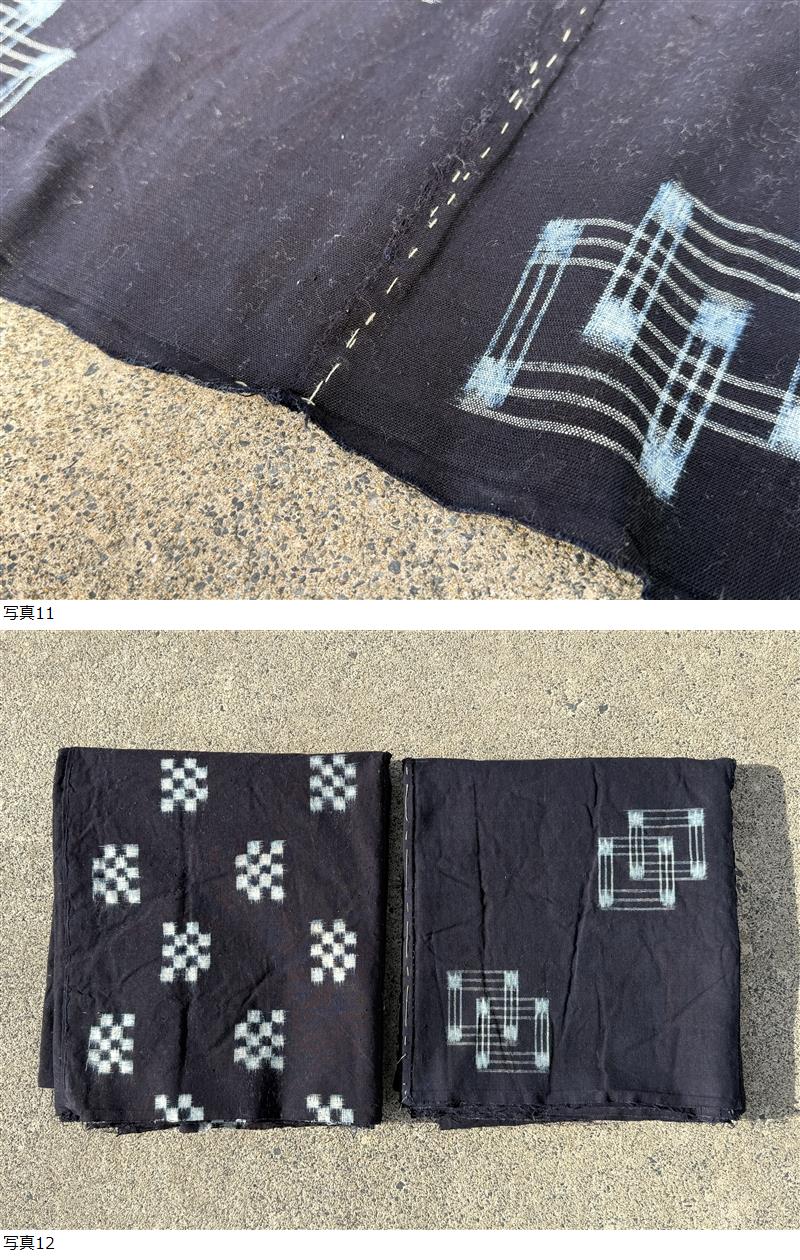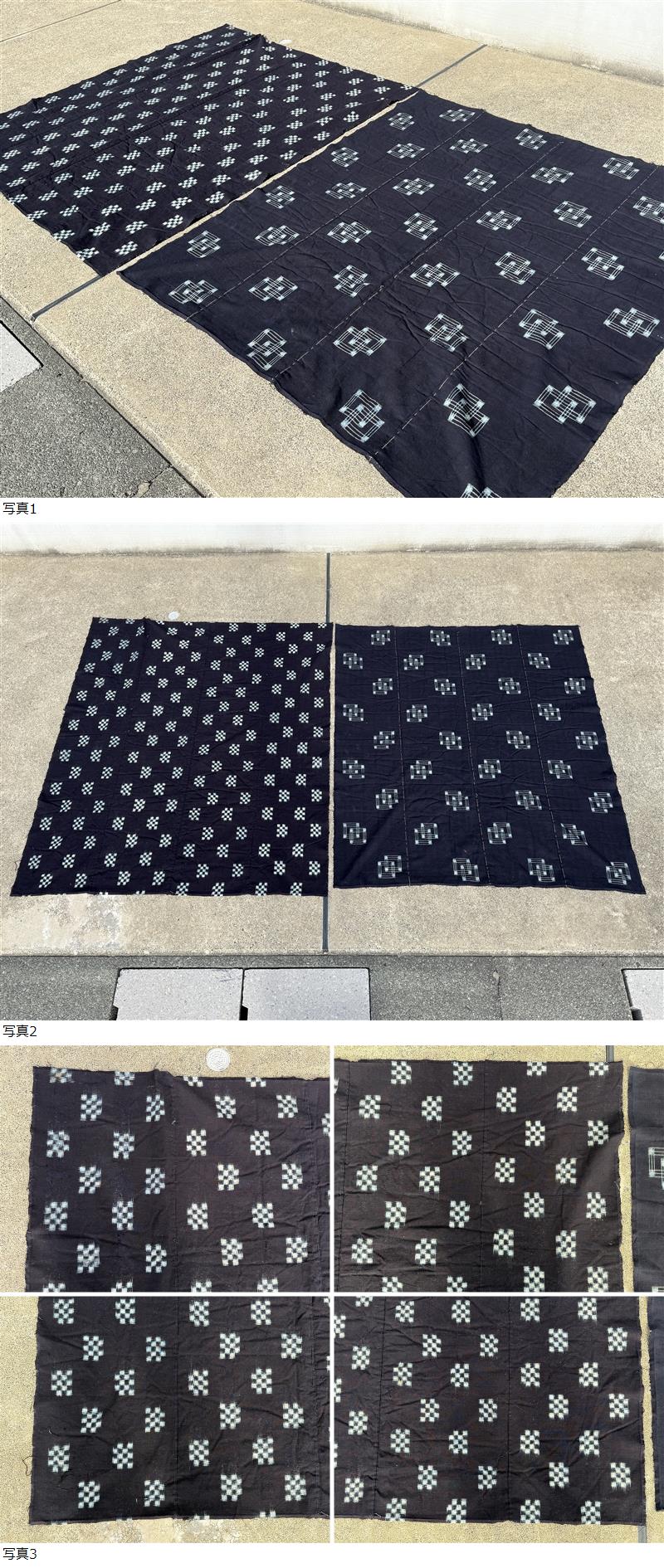 020【初荷】古布 木綿 藍染 絵絣 幾何学模様 市松模様 布団解き 2点 総重量842g 厚手 検索:(山陰 インディゴ アンティーク リメイク素材) 收藏