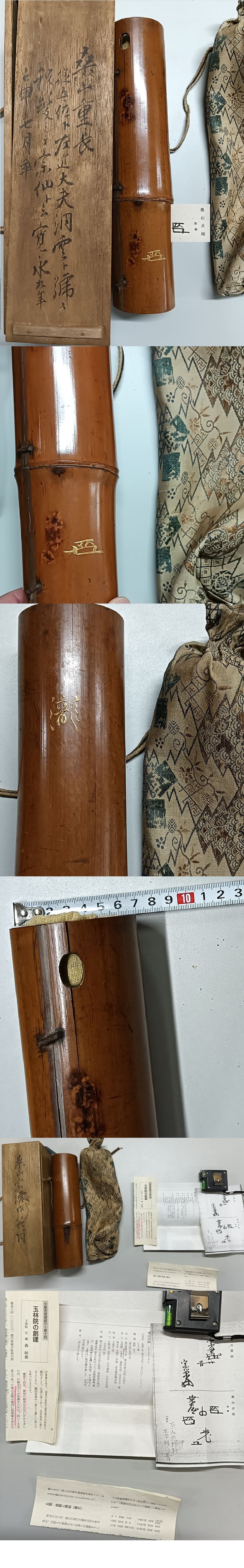 桃山時代 江戸時代 竹一重切花入 尺八花生 桑山 重晴 桑山左近 在銘 花押 共箱 共筒 煎茶道具 片桐石州 收藏