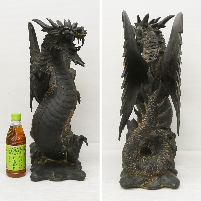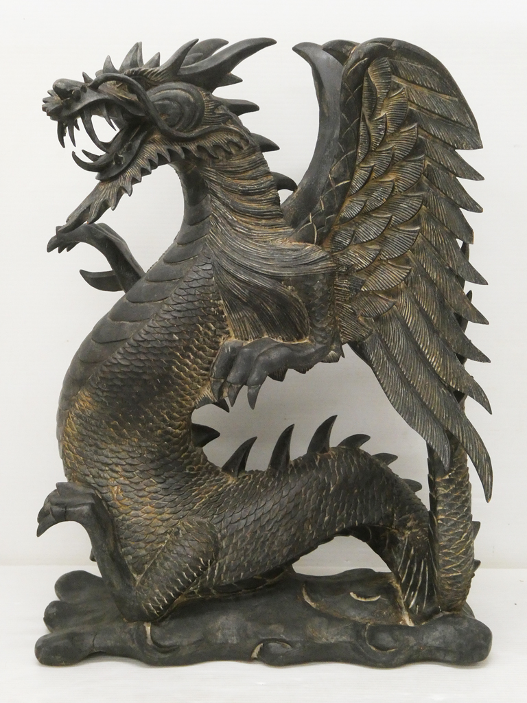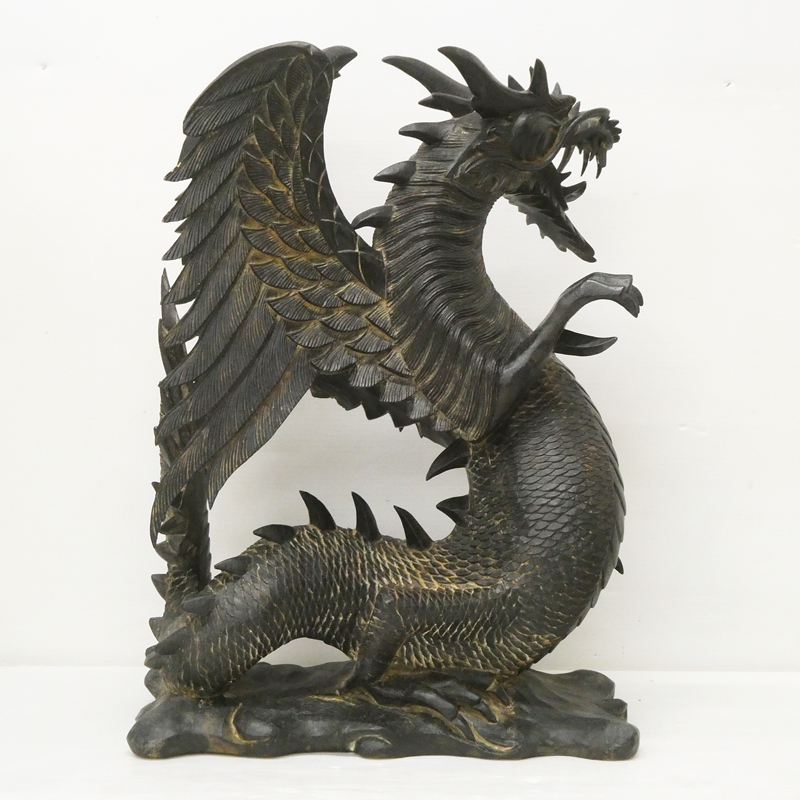 M93) バリ島 木彫り像 ドラゴン 翼を持つ龍 高さ約49cm ナーガ インドネシア 木製 一刀彫 彫刻像 オブジェ 置物 アジアンインテリア ♯ 收藏