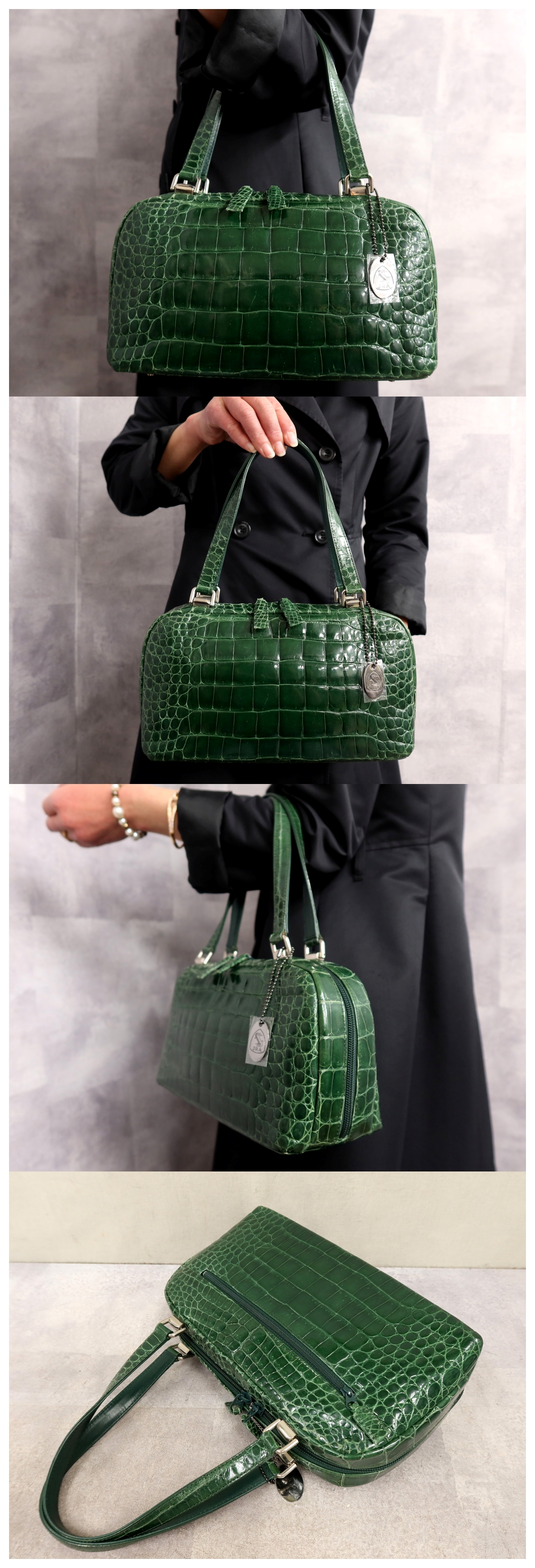 ●超美品●JRA 認定●シャイニング クロコダイル 本 ワニ 革●ハンド バッグ●ビビッドグリーン●シルバー金具●腕掛け●かばん●Js64240 收藏
