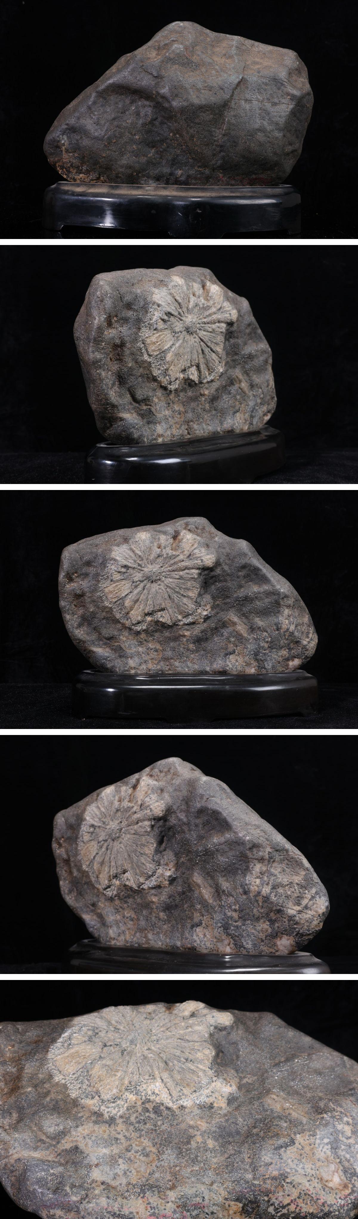【珍品堂】1円から V35-V6 菊花石 鑑賞石 観賞石 原石 鉱物 鉱石 天然石 パワーストーン 重3.97kg 台付 置物 工芸品 骨董品 古美術 時代物 收藏