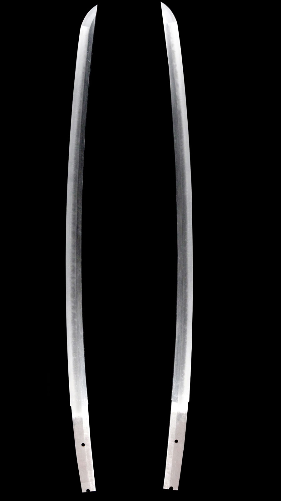 刀身長:約62cm 反り:約1.6cm 目くぎ穴:2個 元幅:約28.5mm 元重:約6.1mm 先幅:約21.9mm 先重:約5.3mm 刀身重:約556g 棟:庵棟 ハバキ:銅 |