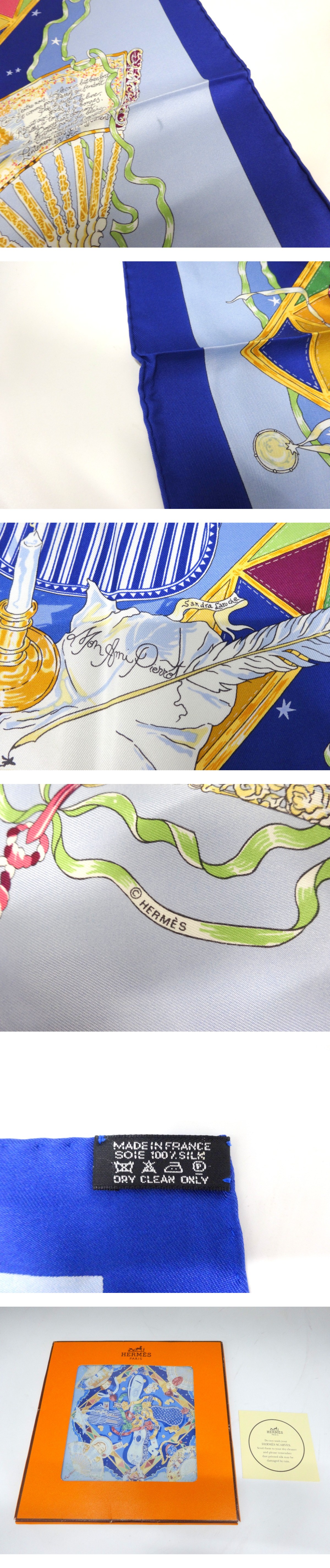 HERMES エルメス カレ90 Mon Ami Pierrot 私の友達ピエロ スカーフ ブルー系 シルク100% ファッション 服飾小物 ブランド 1円~ T0832 收藏
