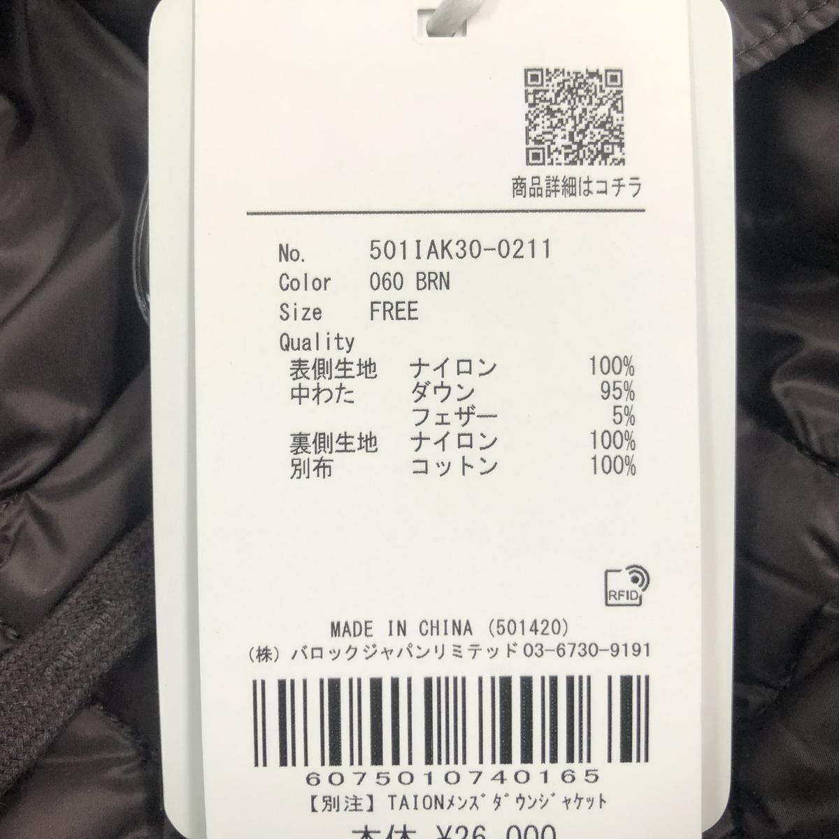 ★未使用★ ダウンジャケット TAION×STYLEMIXER メンズ ブラウン フリーサイズ 501IAK30-0211 直接お渡し歓迎 BYK933031相 收藏