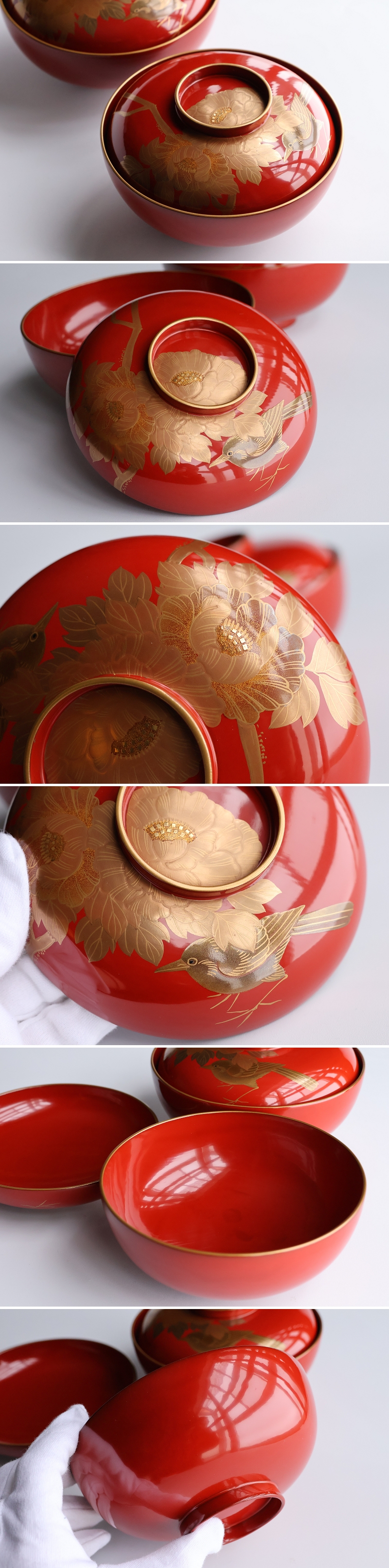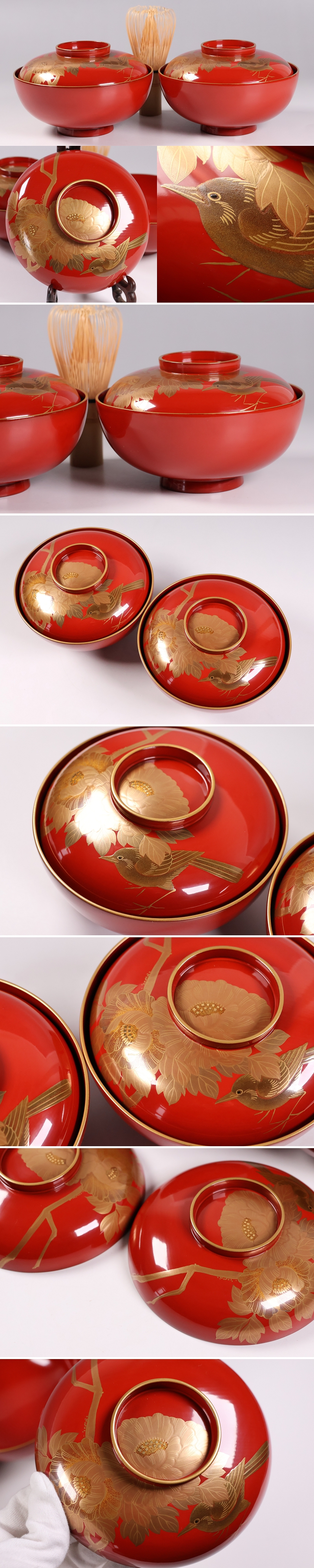 輪島塗 花鳥金蒔絵 朱塗椀 二客