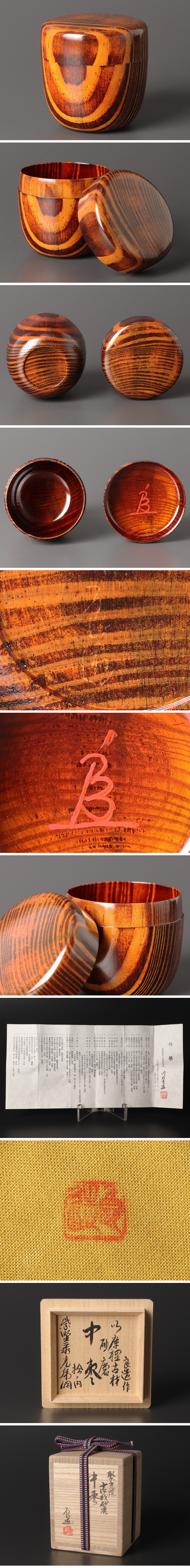 | 【古美味】川北良造作『小野澤虎洞書付』聚光院 古材庫裡 中棗 茶道具 保証品 |