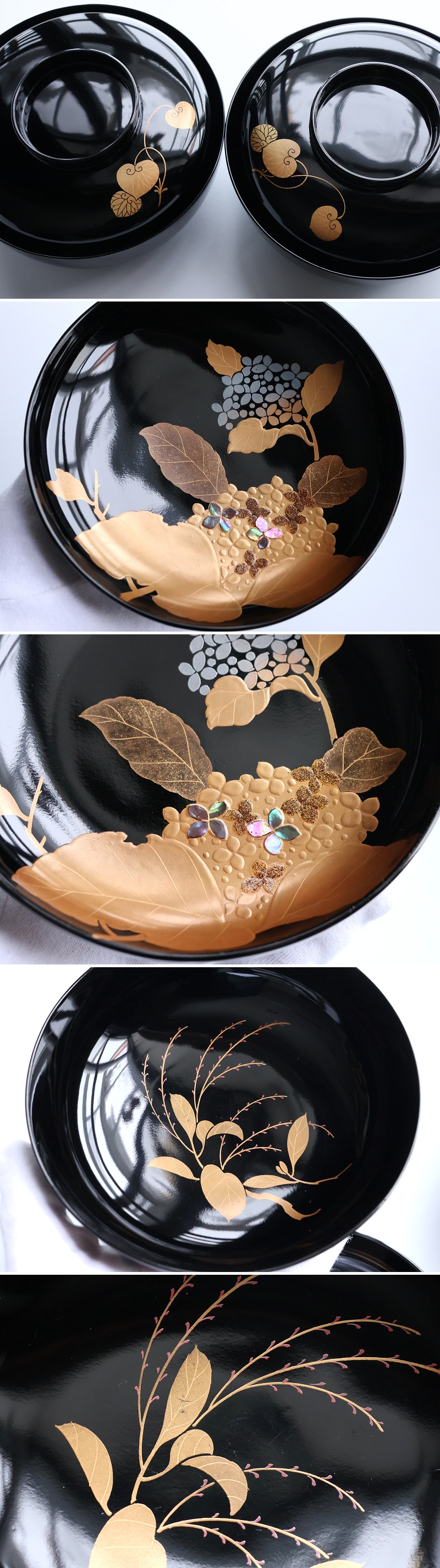 #輪島 #加賀 #蒔絵 #紫陽花 #葵紋 #草花 #煮物椀 #溜塗 #漆芸 #黒塗 #会席 #金蒔絵 #沈金 #梨地 #高盛 #研ぎ出し #切金 #伝統工芸品 #輪島 #能登 #金沢 #加賀 #本堅地 #溜塗 #本金 #正月 #骨董品 #時代 #九谷焼 #古美術 #古玩 #宴席 #z9k803A2k303B