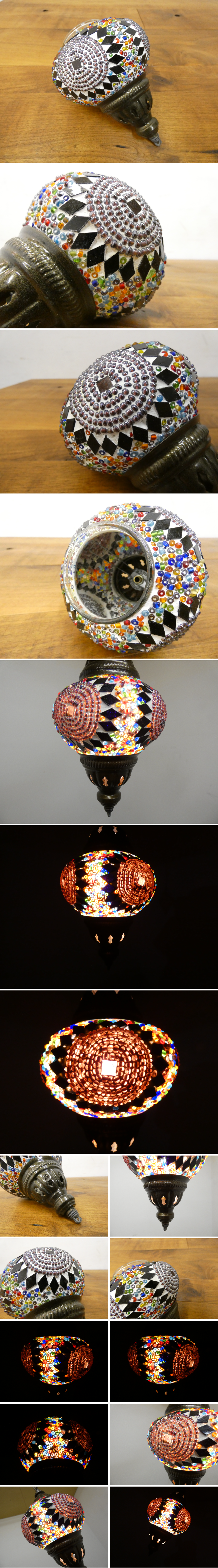 ◆RN246◆美品◆トルコランプ◆ハンドメイド◆モザイクガラス◆ペンダントライト◆シェードのみ◆照明◆直径13cm◆幾何学模様 吊り下げ照明 收藏