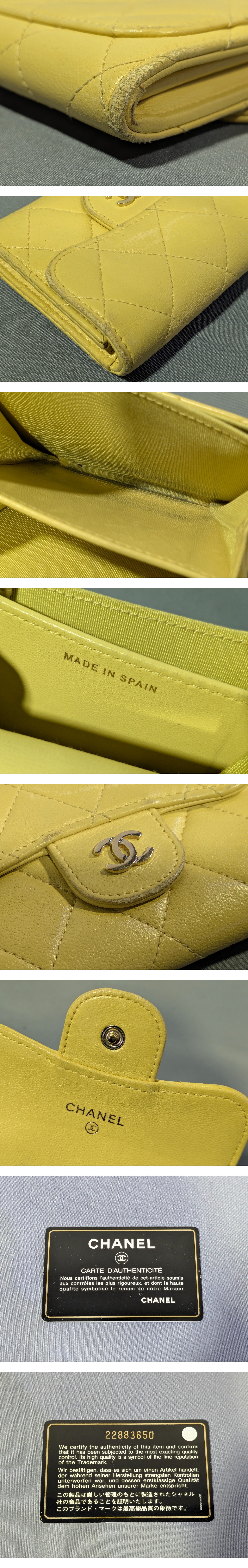 埼玉発 CHANEL シャネル マトラッセ ラムスキン 三つ折り 財布 イエロー シリアル22番台 ギャランティ付 正規品 | |||||||||||||||||||||||||||||||||||||||||||||