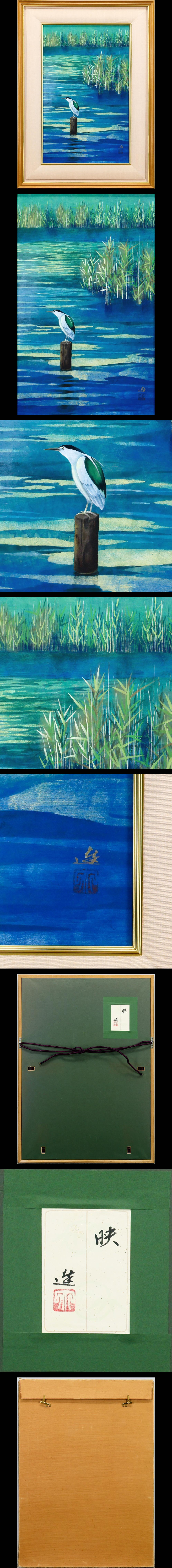 【真作】【WISH】牧進「映」日本画 10号 金泥仕様 共シール ◆深い青の水面に鷺が映える 〇現代巨匠 旭日双光章 #26012788 收藏