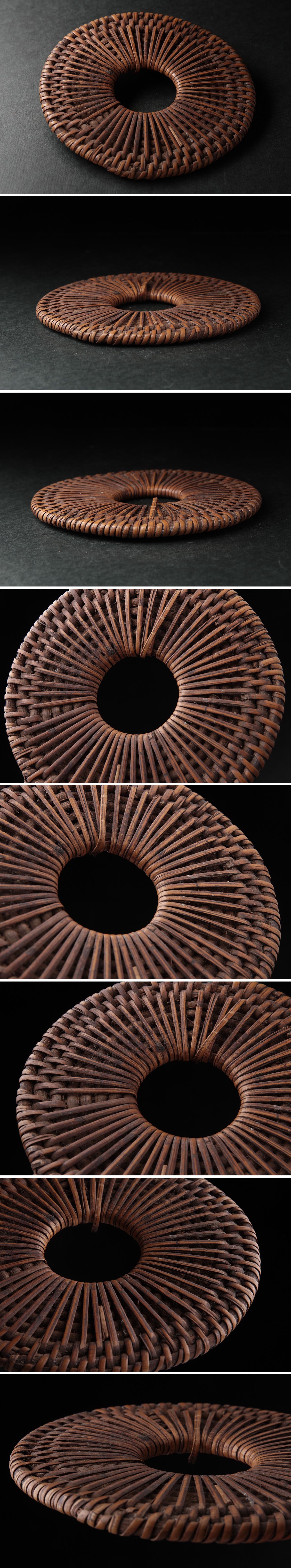 | ◆ 時代 煎茶道具 籐編 釜敷 径11.9cm・煎茶 瓶台・急須台・瓶座・底座・円式底座 茶具 茶器 古美術 ◆