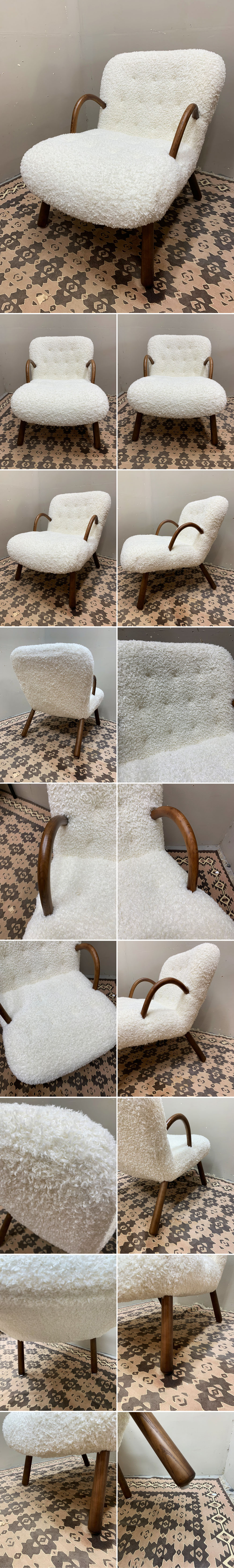 ■EM057A/未使用保管品/名作/Clam Chair/クラムチェア/Arnold Madsen//ボア/白/北欧 /リプロダクト/イージーチェア 收藏