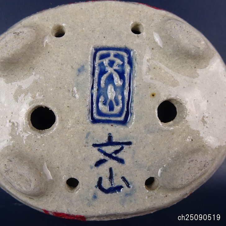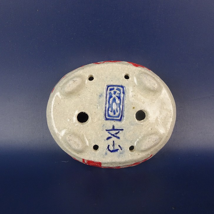 盆栽鉢 文山 越前文山 小鉢 長辺 約 9.4cm 楕円鉢 赤絵 竹 笹 花 はな ハナ 鑑賞 観賞用 現品 新品 收藏