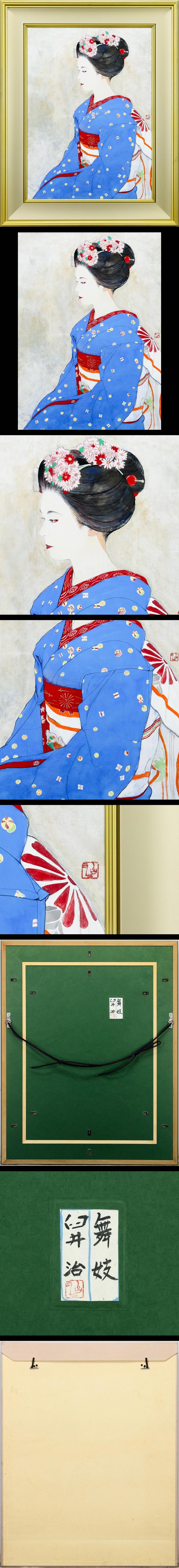 【真作】【WISH】臼井治「舞妓」日本画 20号 大作 金泥・プラチナ泥仕様 共シール ◆花簪と青衣が彩る優美な横顔 #26013109 收藏