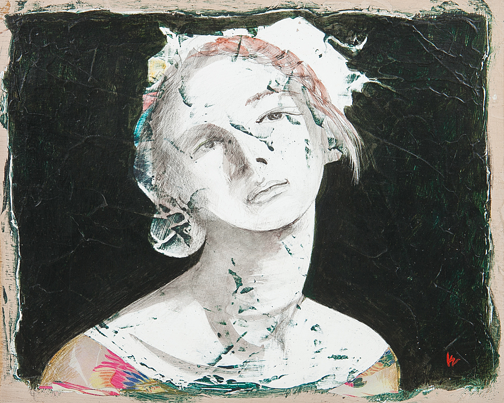 【1on1】真作 舟山一男 『花祭』 油彩 コラージュ 板 3号 2007年 額装 ■ 独特の世界観を放つ画家 收藏