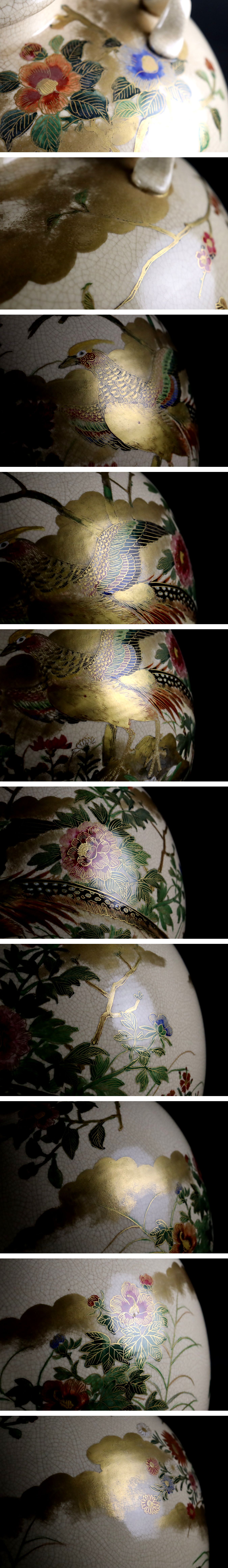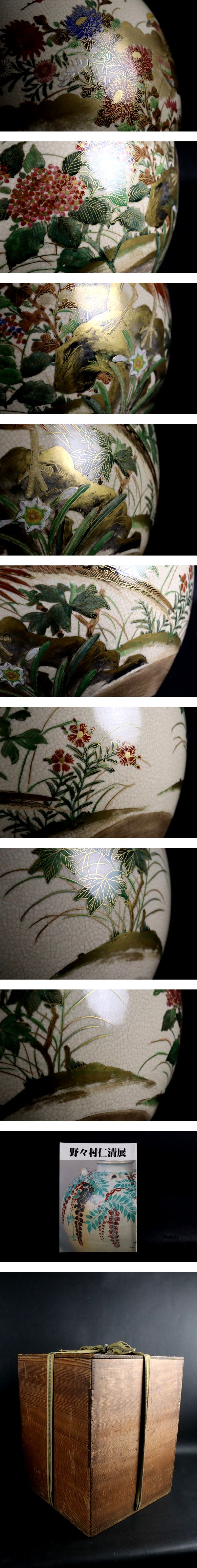 野々村仁清 色絵金彩 梅花雉図茶壺 御室焼四耳葉茶壷 仁清印 箱・資料付 收藏