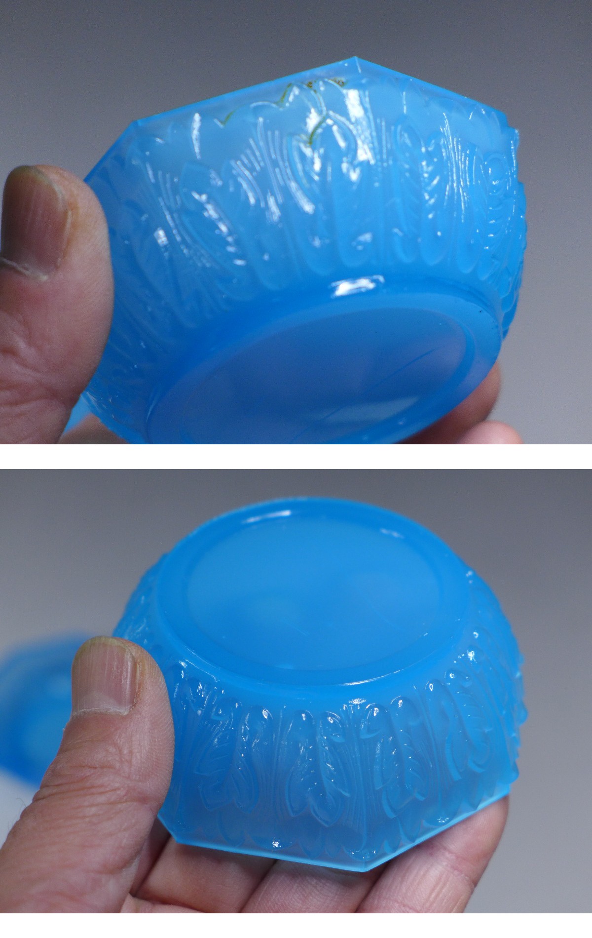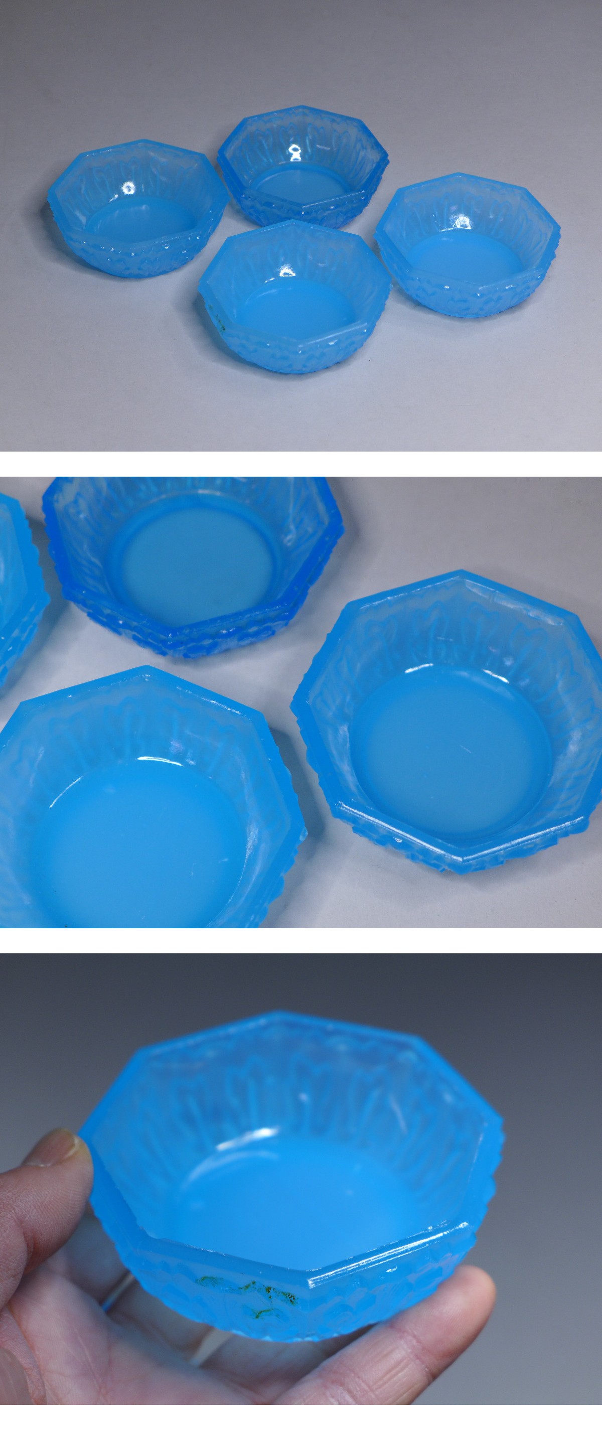 明治~大正 プレスガラス SMALL GAINS BRING RICHES IN 小皿 4枚 青プレス硝子4客まとめて 收藏